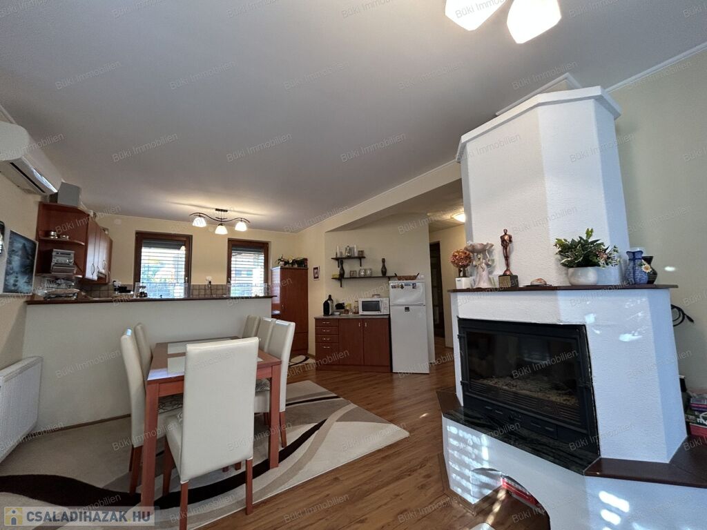 Ez a modern, minden részletében igényes családi ház Balatonboglár legszebb környezetében kínál páratlan életminőséget. A négy külön bejáratú szoba tökéletes arra, hogy a család minden tagja megtalálja a saját nyugalmát, legyen szó csendes pihenésről vagy zavartalan munkáról, miközben a tágas terek és a nagy ablakok által beáramló természetes fény otthonos, mégis fényűző légkört teremt. Az amerikai konyhás nappali a társasági élet szíve, mert itt együtt főzhet szeretteivel, miközben megosztják a nap élményeit, vagy együtt nézik kedvenc sorozatukat vacsorakészítés közben. A ház kifinomult hangulatát a természetes fából készült nyílászárók melegsége, a prémium minőségű kerámia- és laminált padlóburkolatok, valamint a földszinti cserépkályha romantikus bája emeli új szintre, amely minden vendéget lenyűgöz.