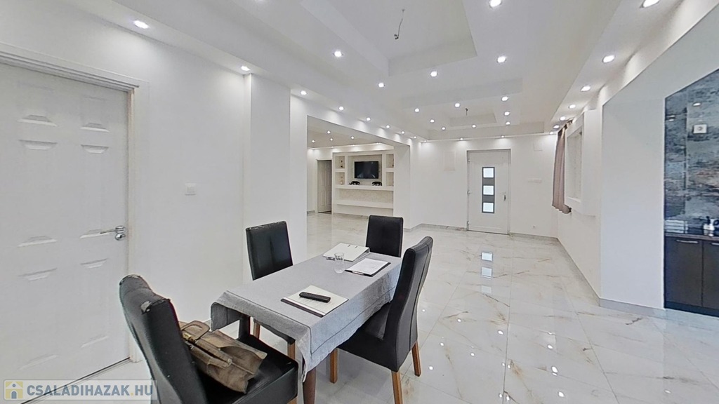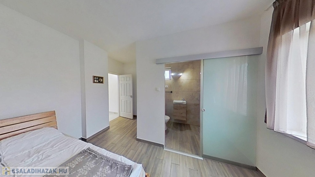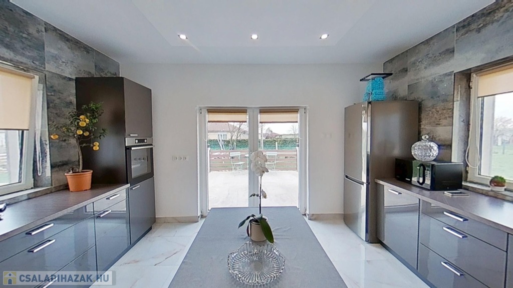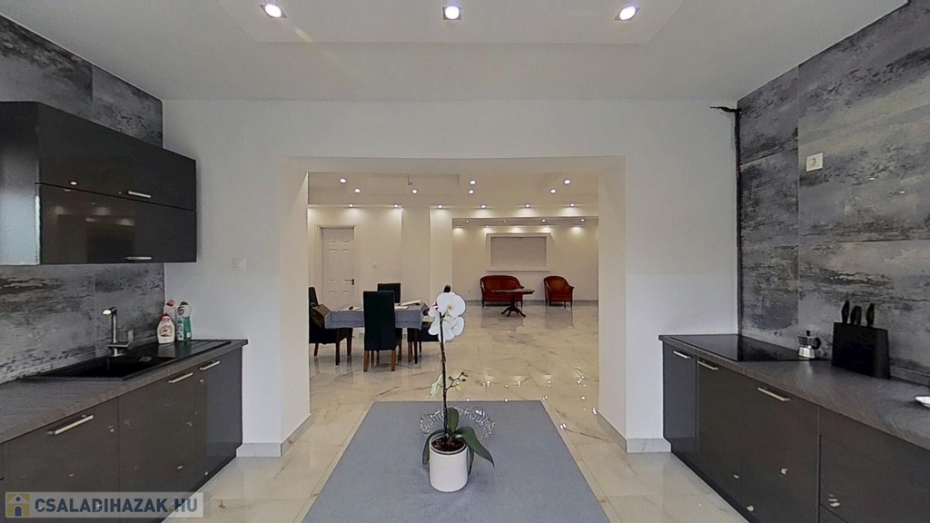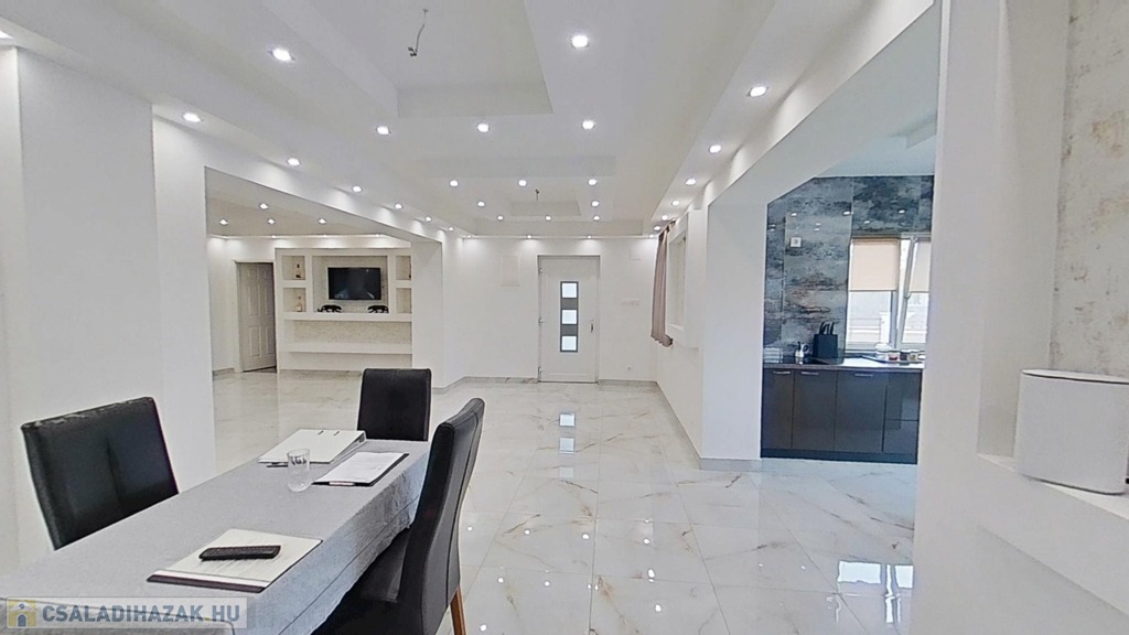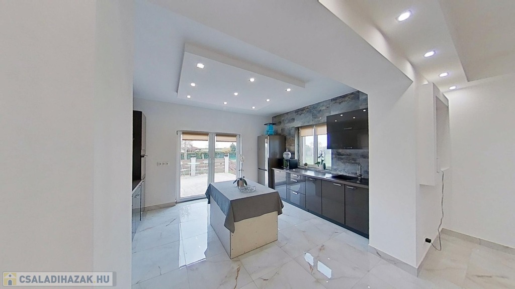 A K-i tájolású, földszintes, 146 m2-es, 3 szobás, 2 fürdőszobás, tágas nappalival rendelkező, kívül-belül megújult családi ház felújítása 2022-ben kezdődött és 2024-ben érte el jelenlegi formáját.