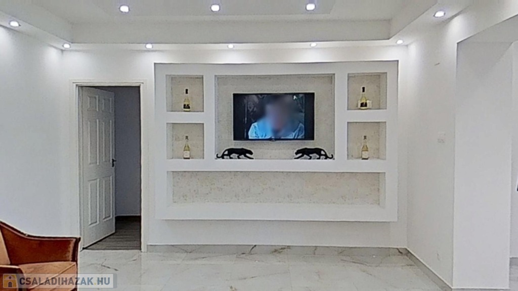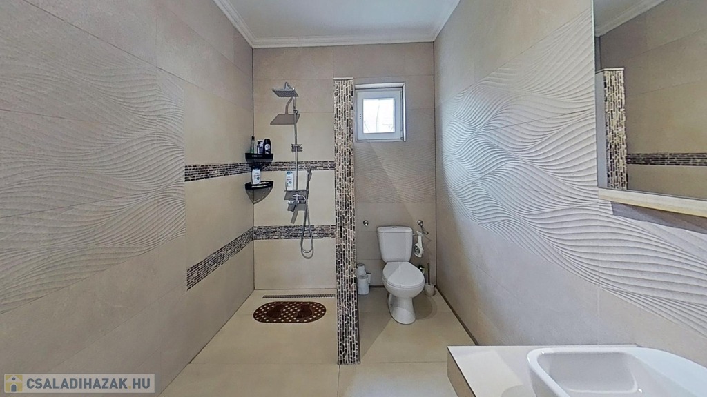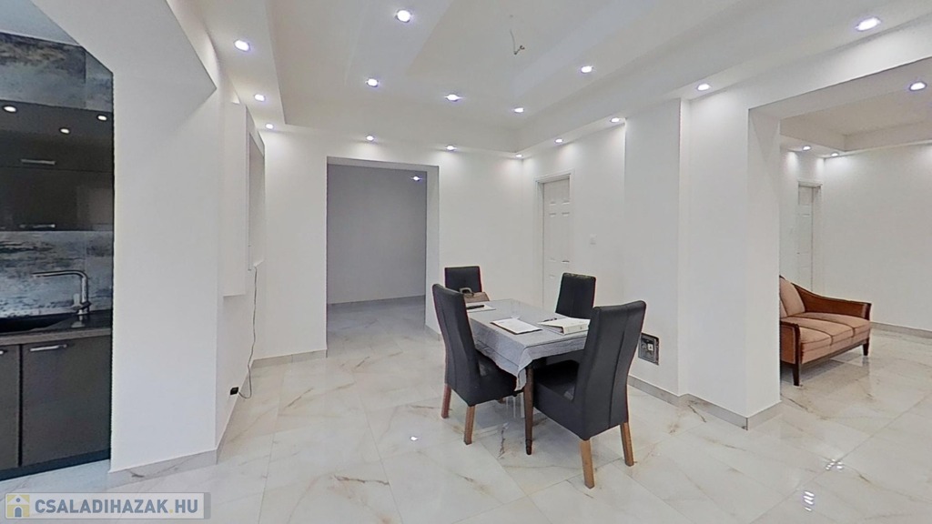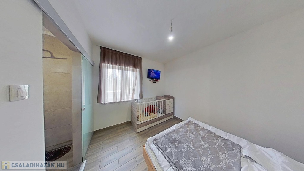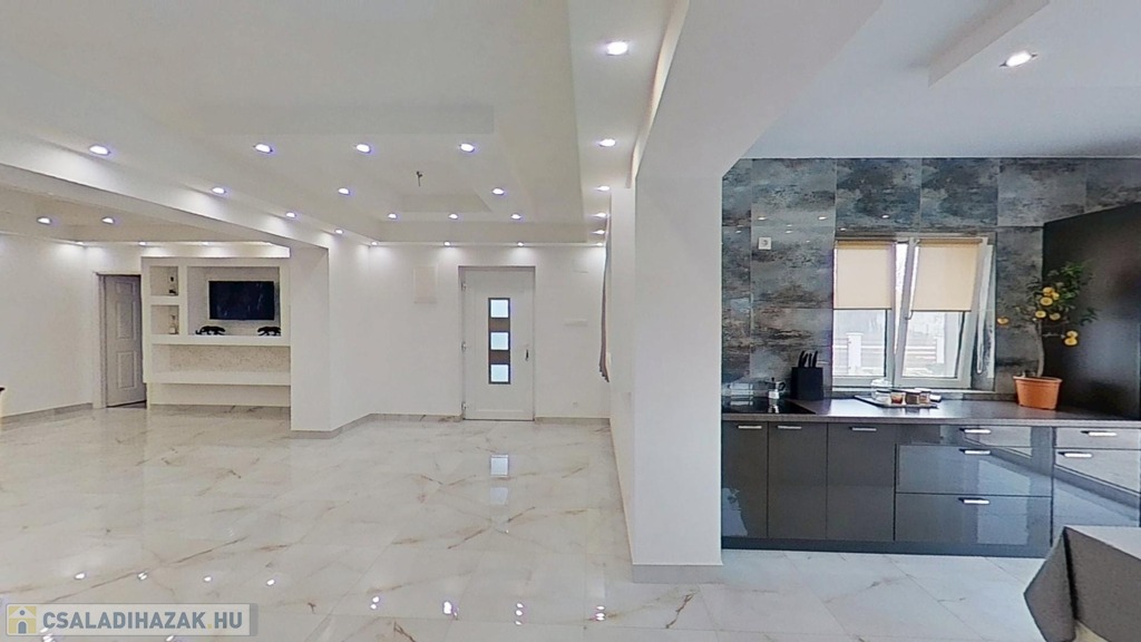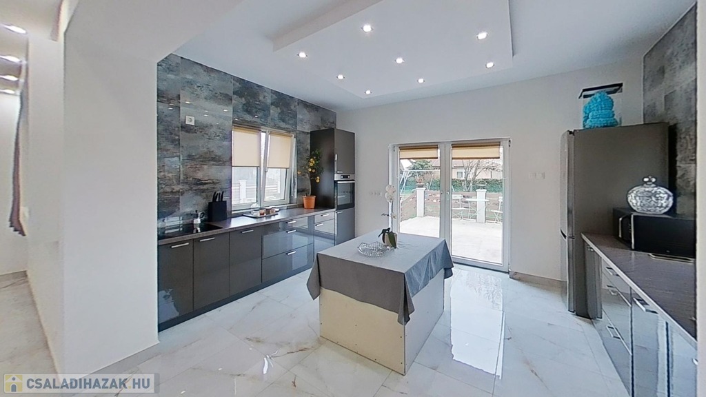 A K-i tájolású, földszintes, 146 m2-es, 3 szobás, 2 fürdőszobás, tágas nappalival rendelkező, kívül-belül megújult családi ház felújítása 2022-ben kezdődött és 2024-ben érte el jelenlegi formáját.