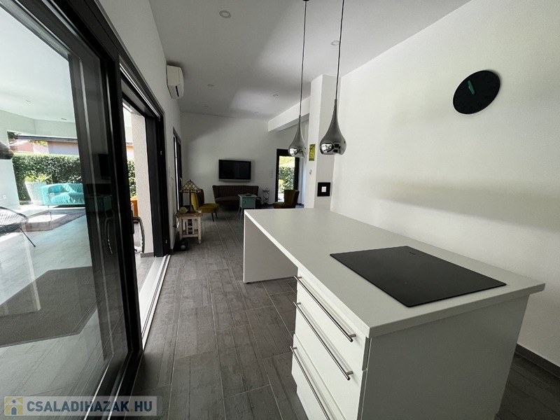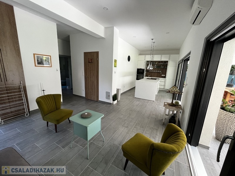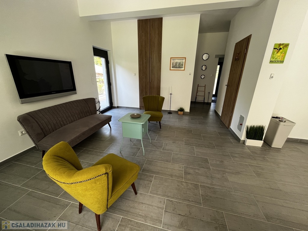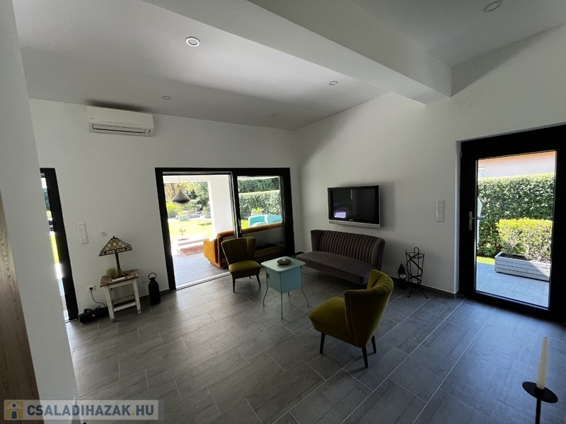 Balatonföldvár nyugodt, csöndes és családias részén, 5 perc sétára a Balatontól kiadó ez a ritkán látható minőségben, 2018-ban épült, összesen 160 nm-es családi ház.