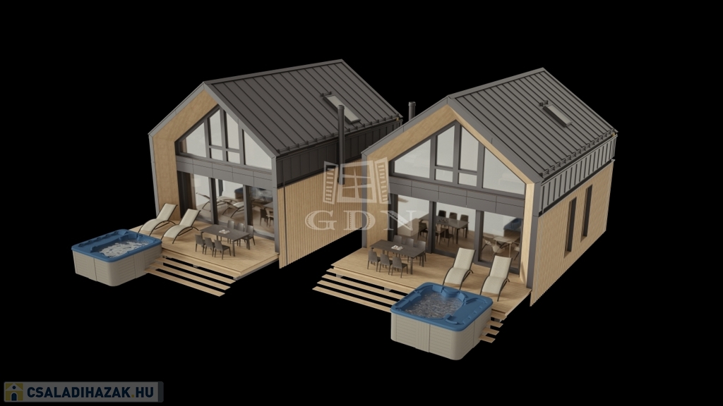 Prémium konyhabútor konyhaszigettel, okosotthon rendszer, szauna (épületen belül), látvány design kandalló, 4 személyes prémium jacuzzi, gázos grillsütő.