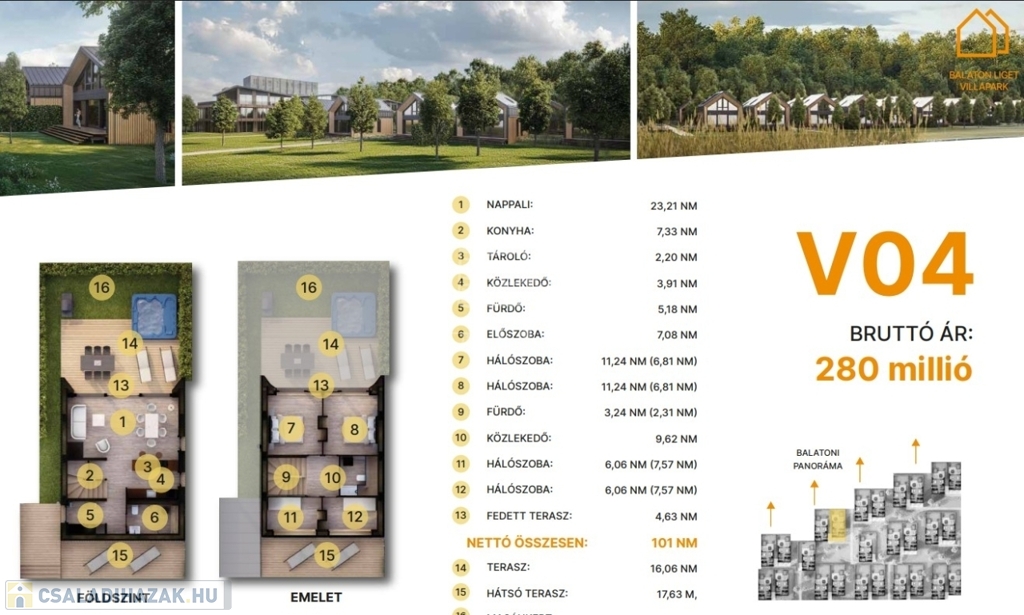 min. 64 m² magánkert.