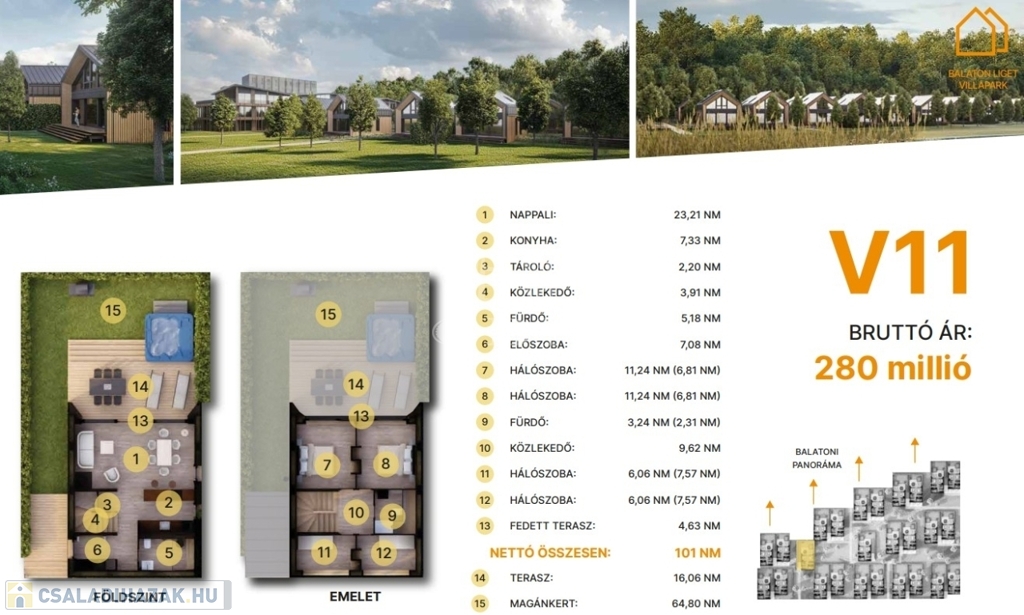 min. 47 m² magánkert.