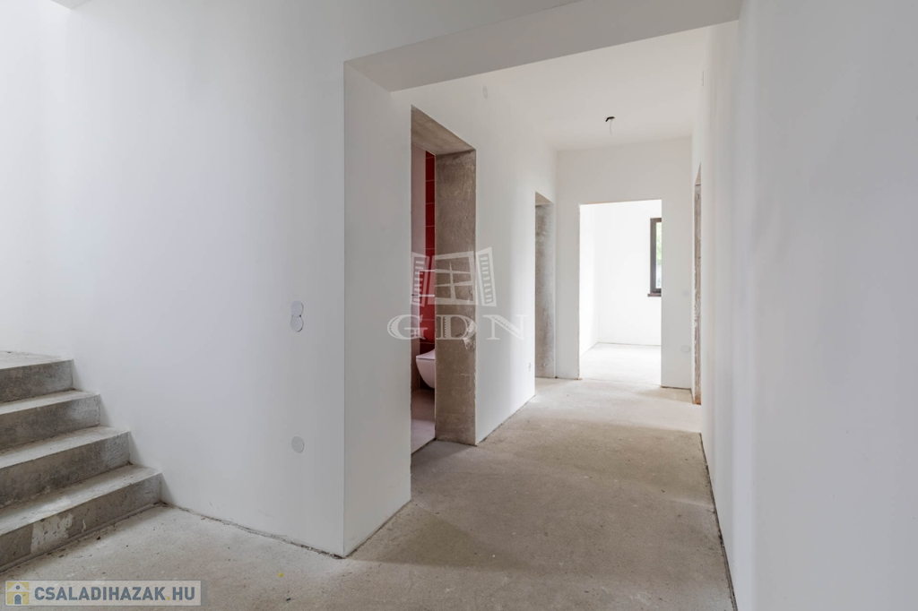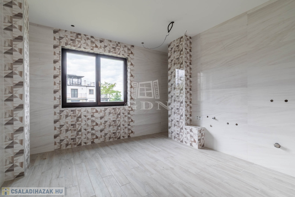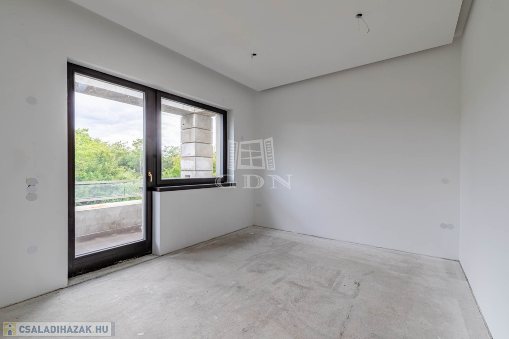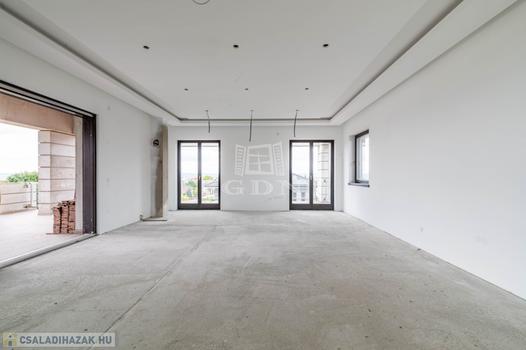 A 112 nm-es nettó alapterületű emeleten 1 nappali (kandalló előkészítéssel), 3 szoba, 2 fürdőszoba, valamint 101 nm-es részben fedett és pergolás körpanorámás terasszal.