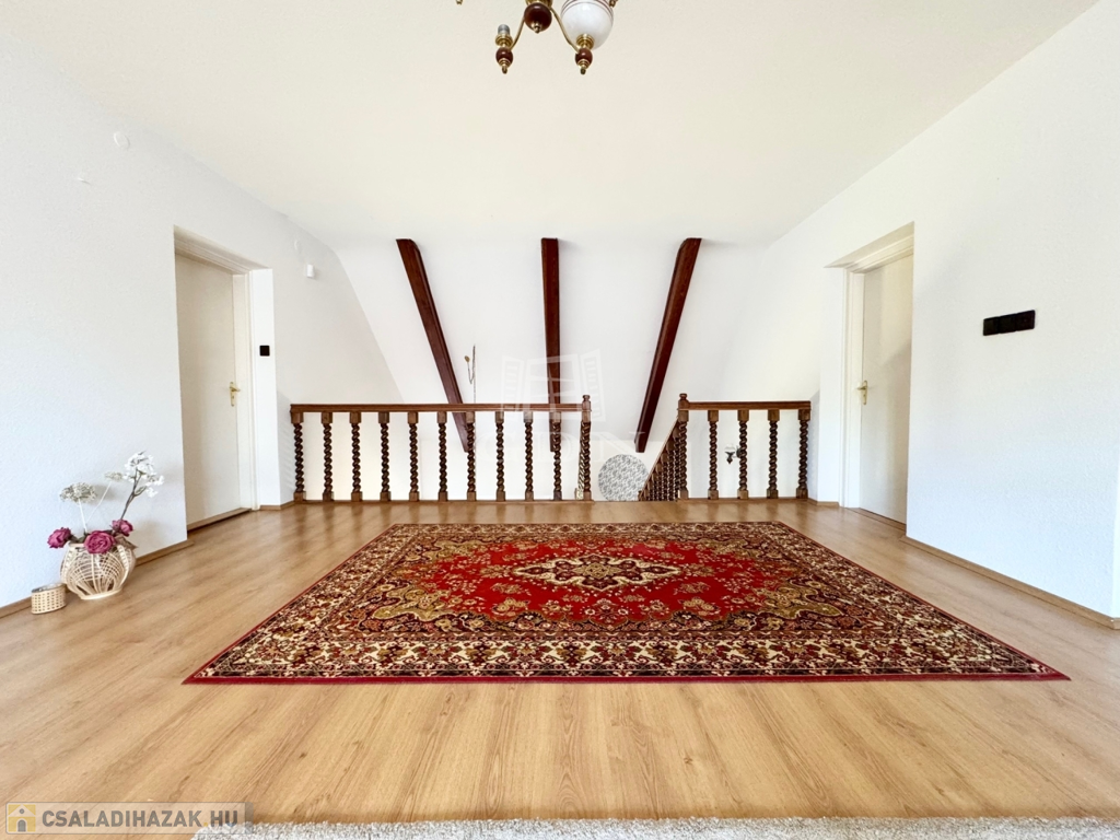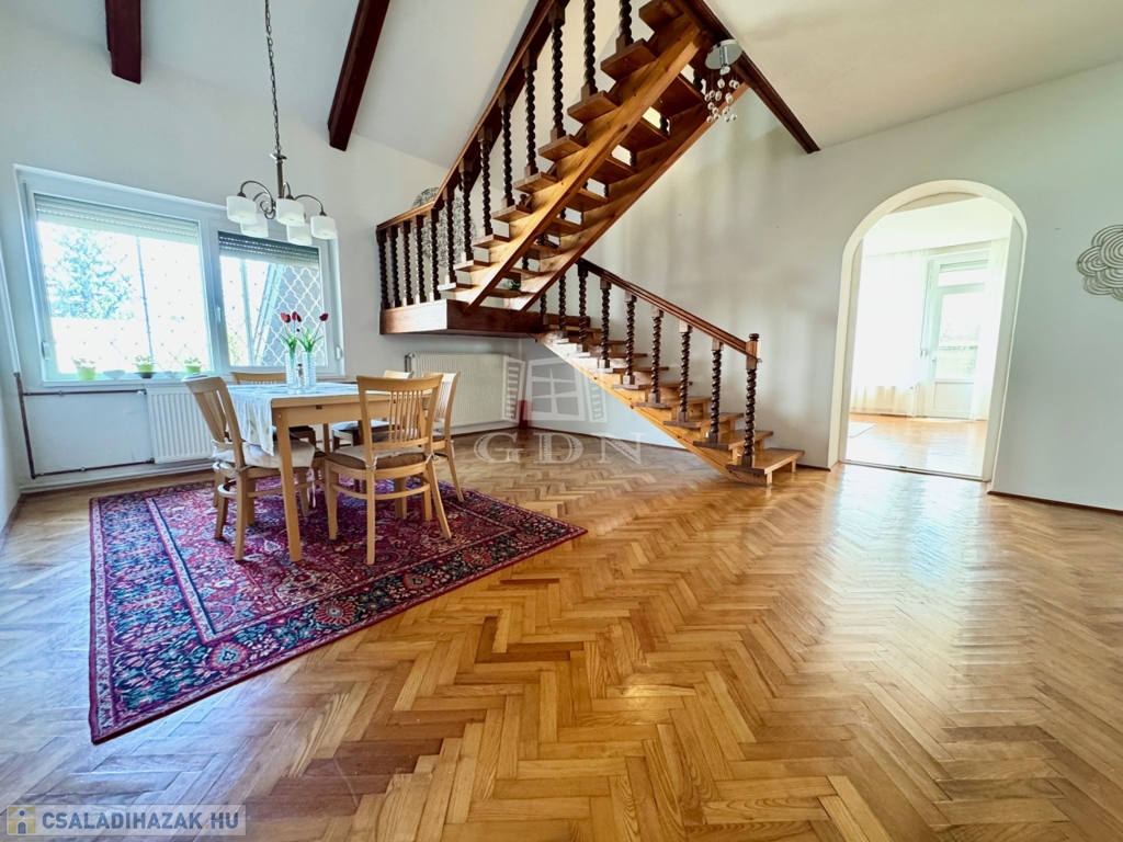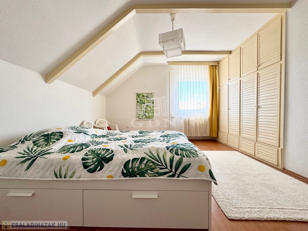 A Balaton északi partjának egyik legszebb városában, Balatonfüreden, kiváló közlekedés és ellátottság mellett, kertvárosi környezetben, 10 perc sétára a vitorlás kikötőtől, és a Tagore sétánytól, 586 m2-es összközműves telken, 1990-ben épült, 190 m2-es lakóterületű, 2 szintes, dupla komfortos, dupla nappalis + 3 hálószobás, a földszinten található nappaliból közvetlen 40 m2 -es teraszkapcsolattal rendelkező, kiváló elosztású, külön nyíló szobás, napos-világos, K-NY-i tájolású, alacsony fenntartású, kombinált gázcirkó és cserépkályha fűtésű, jó állapotú, 2018-ban új thermo ablakokra cserélt, klimatizált, riasztórendszerrel felszerelt családi ház, beépített, gépesített konyhával, nagyméretű tárolóval, garázzsal, úszómedencével, rendezett kerttel, rugalmas költözéssel eladó.