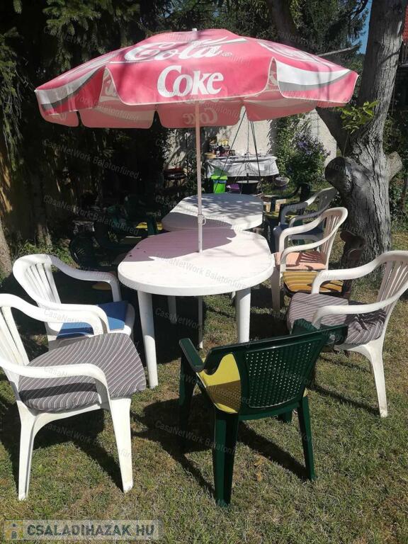 Balatonfüred kertvárosi részén csendes 2 utcáról is megközelíthető, körbekerített 1308 m2-es sík Déli tájolású telken, 136 m2 alapterületű családi ház.