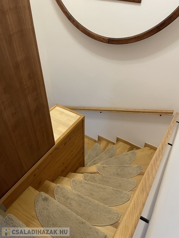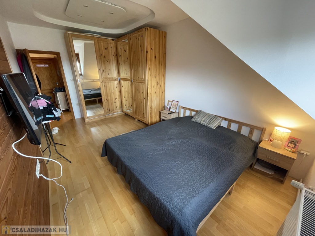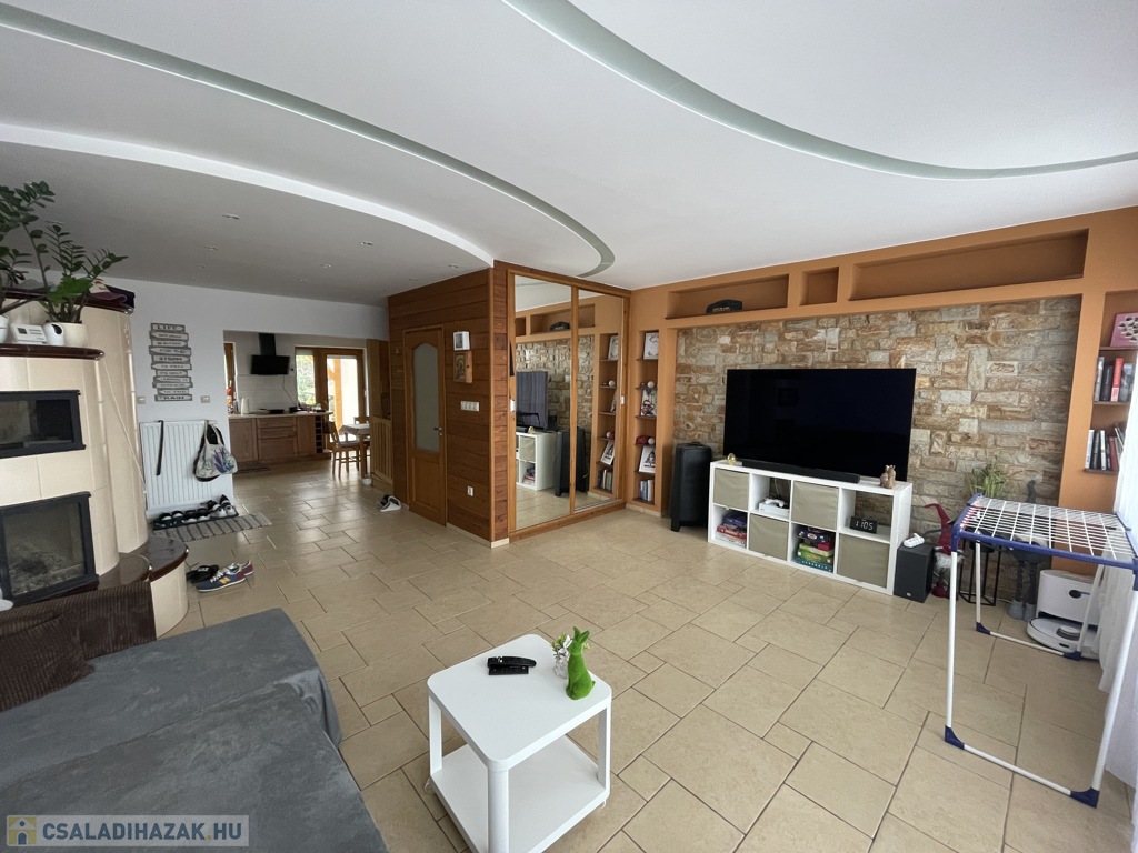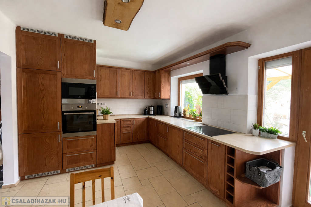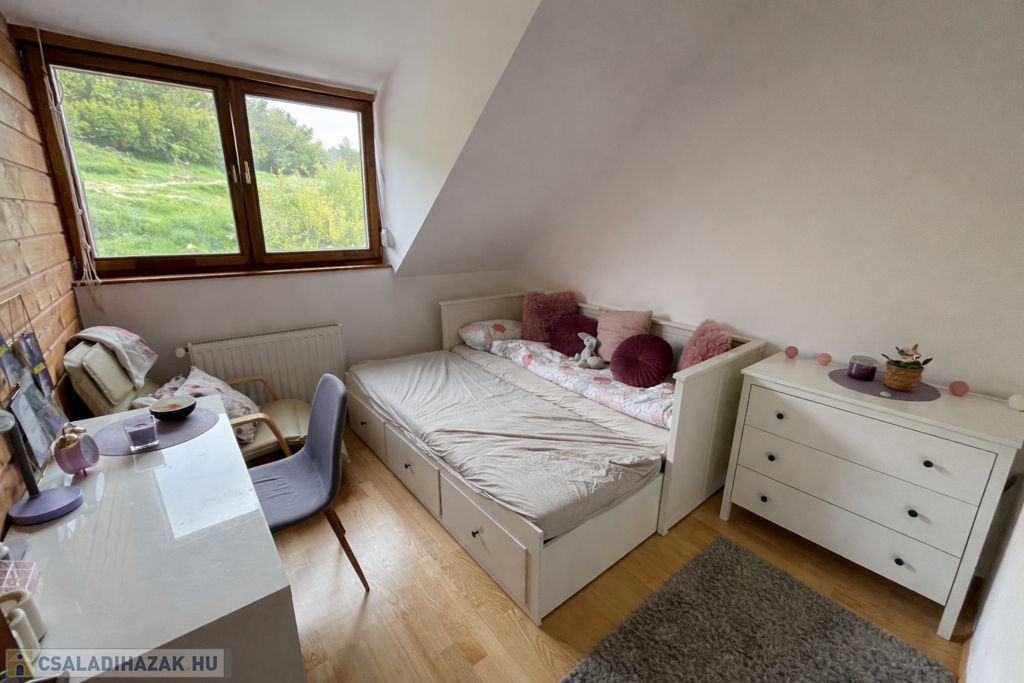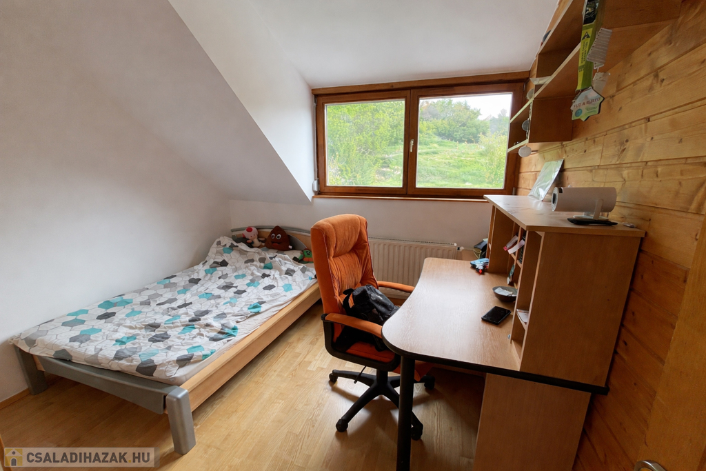 A felső szinten 4 kényelmes hálószoba és egy fürdőszoba biztosítja a család minden tagjának a saját életteret. Az otthon melegéről új gázkazán gondoskodik radiátoros hőleadással, amelyet egy hangulatos cserépkályha egészít ki. Továbbá egy korszerű, 5 kW-os napelemrendszer hozzájárul az alacsony fenntartási költségekhez, míg a központi porszívó a mindennapi kényelmet növeli.