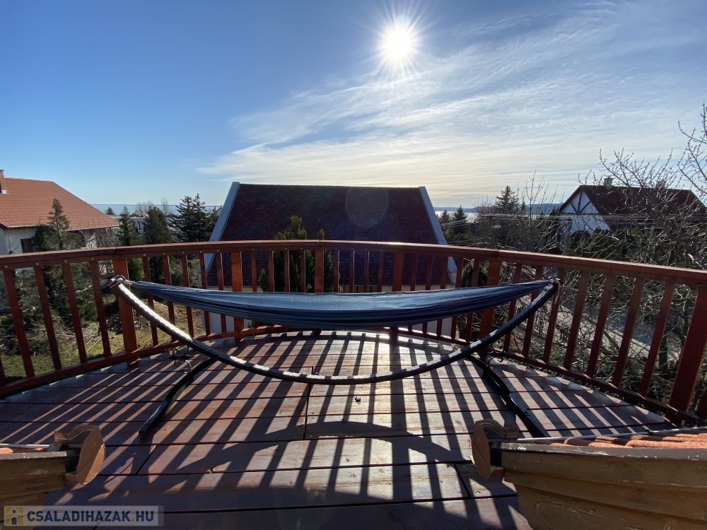 Az emeleten található 11 m²-es teraszról csodálatos balatoni panoráma tárul elénk, míg az alagsor külön lakrészként is használható, saját konyhával és fürdőszobával.