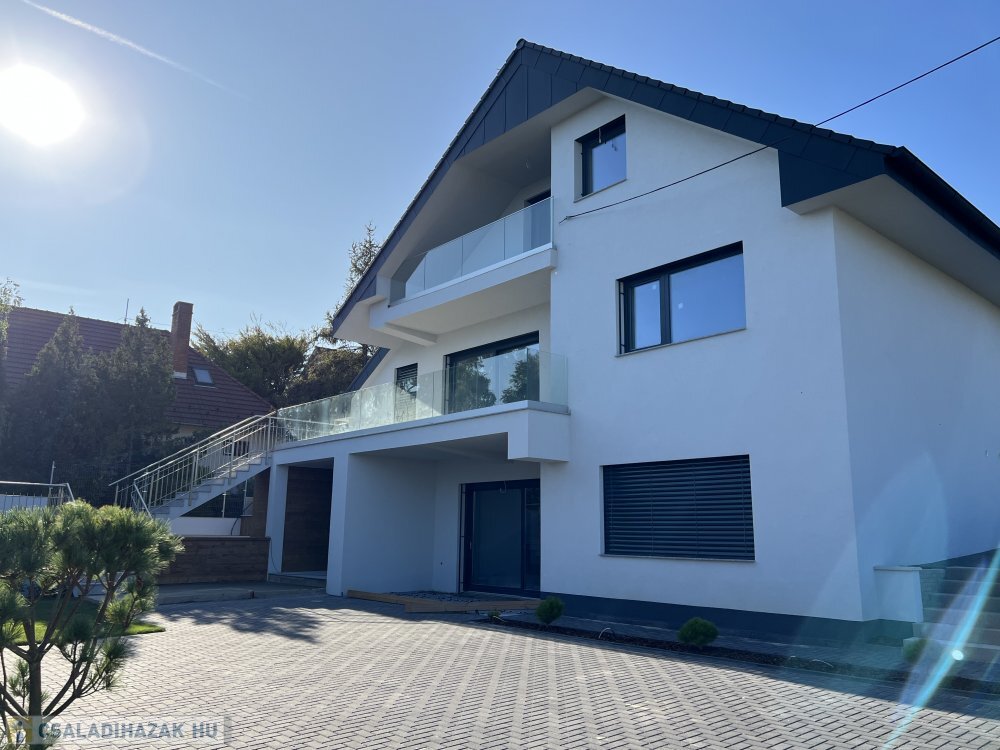 Ez a lenyűgöző, 270 m²-es, kétlakásos lakóház Balatonfüreden tökéletes egyensúlyt teremt a modern kényelem, az elegancia és a természeti szépség között.