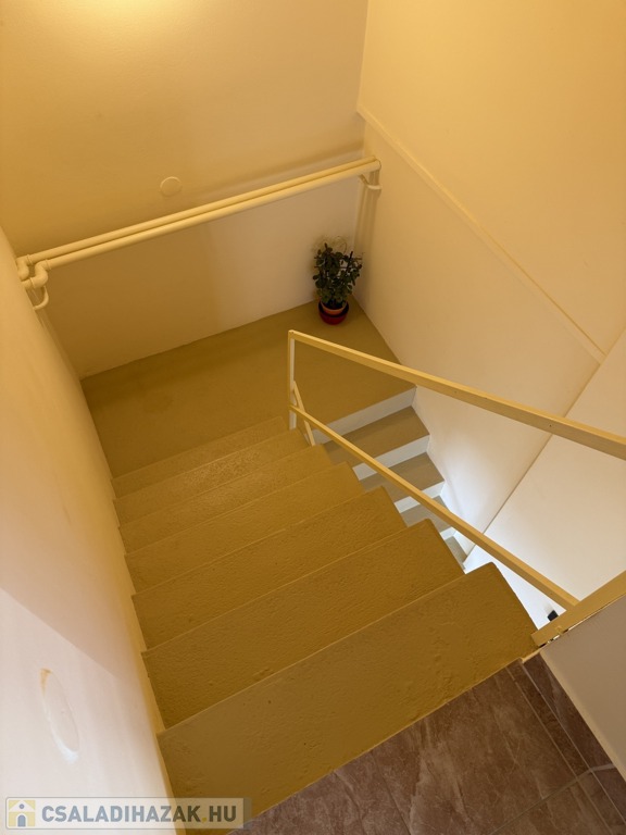 A földszinten erkélykapcsolatos kiválóan benapozott 25m2-es nappali, konyha-étkező, kamra, közlekedő, egy 2022-ben felújított, minőségi burkolatokkal és szaniterekkel ellátott kádas fürdőszoba, és kényelmes lépcsőfeljáró található.