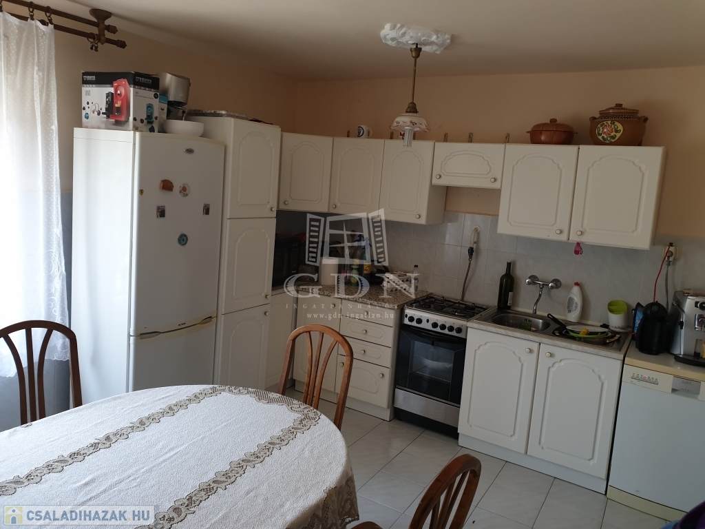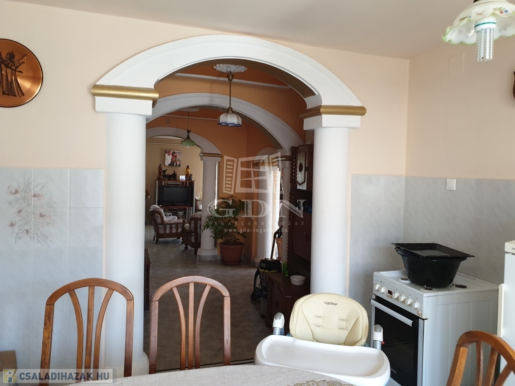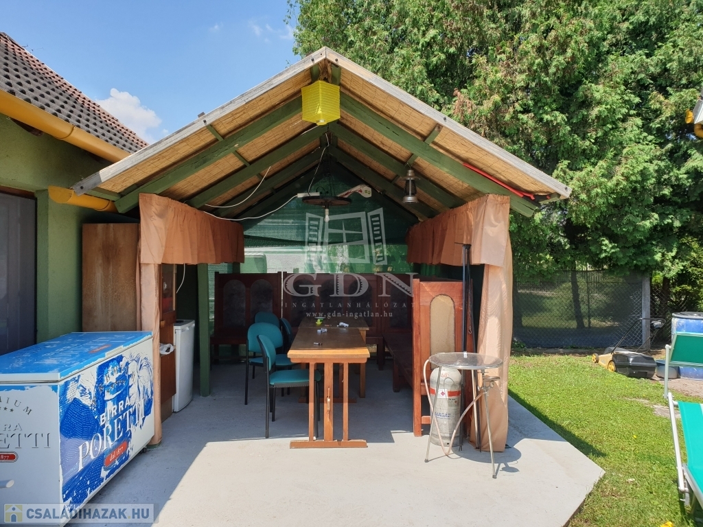 A főépület földszintjén található egy óriási nappali, egy háló, konyha ebédlővel és egy fürdőszoba, valamint külön helyiségben wc. Az emeleten található három hálószoba, fürdőszoba és illemhelyiség. Innen juthatunk ki az erkélyre is, ahonnan csodálatos kilátás tárul elénk. Az udvaron továbbá filagória és nyári konyha is használható. Parkolás akár az udvarban, de saját parkolóhelyek az ingatlan előtt.