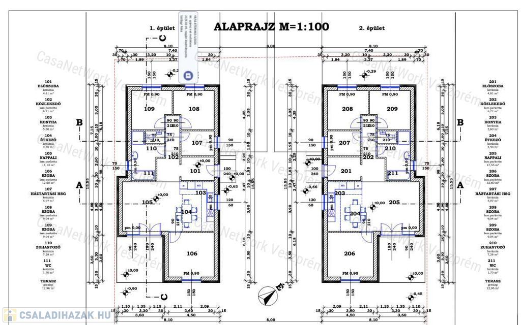 Nettó alapterületük: 85 m2+13 m2 terasz, 3 szoba+nappali kialakítással, külön fürdő-WC -háztartási helység- előszoba.