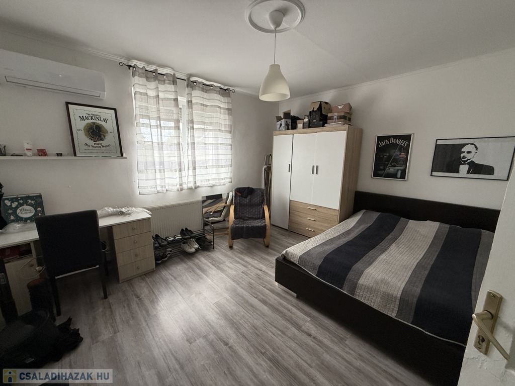 A kisebb, 40 m²-es ház külön bejárattal rendelkezik, saját fürdőszobával, konyhával és egy szobával. Fűtése parapetes gázkazánról történik, klíma és villanybojler szintén rendelkezésre áll.