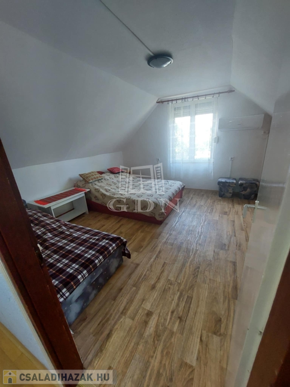 Az 1999-ben épült, jó állapotú, 128 m2-es, 5 szobás nyaraló 863 m2-es parkosított telken helyezkedik el.