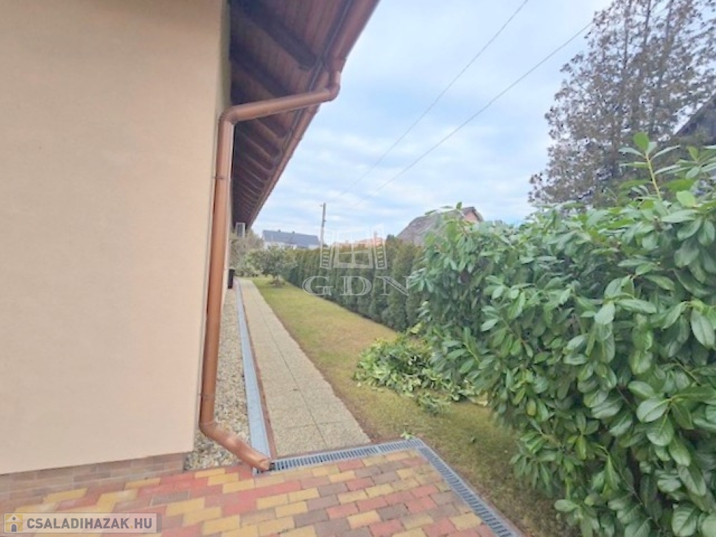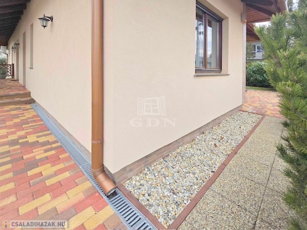 A házat gondosan megtervezett, ízléses, 529 m2-es kert öleli körbe, amelyet egész évben kellemes növények díszítenek.