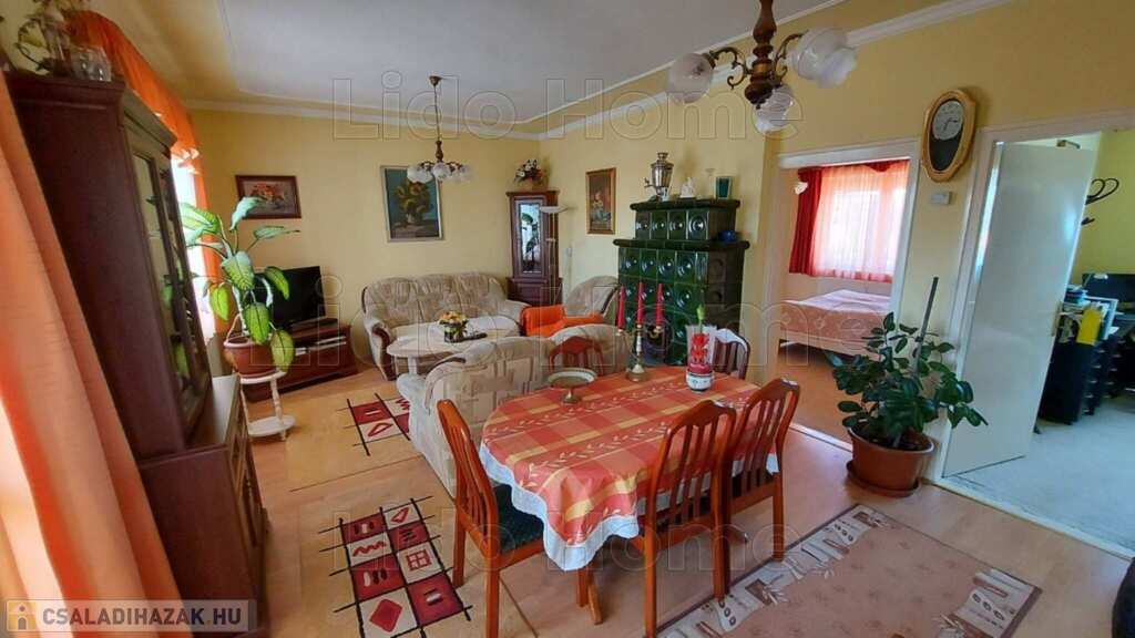 - fűtés, meleg víz: gázkazán, radiátoros hő leadás, cserépkályha