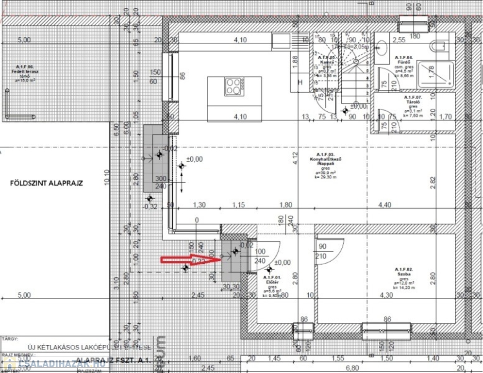 Földszint (69m2): nappali, konyha+étkező, szoba, fürdő+wc, tároló, kamra, fedett terasz (15m2)