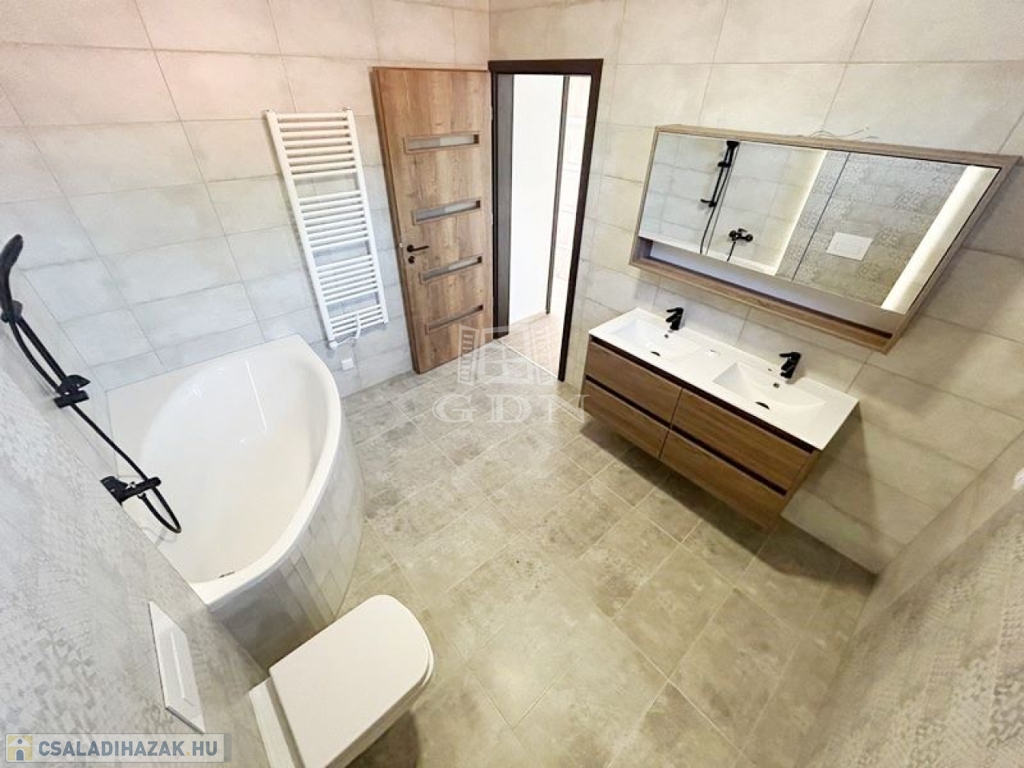 Az ingatlan magas színvonalú kivitelezéssel épült, a mai kor energetikai igényei alapján. Fűtés-hűtés fan coil hőszivattyús rendszer. 7 légkamrás műanyag külső nyílászárók, fából készült beltéri ajtók. Kiváló minőségű hideg- és meleg burkolatok. Az ingatlan tervezésénél lényeges szempont volt a praktikus elrendezés és az élhető tágas, világos terek biztosítása, amely letisztult, modern stílussal párosult.