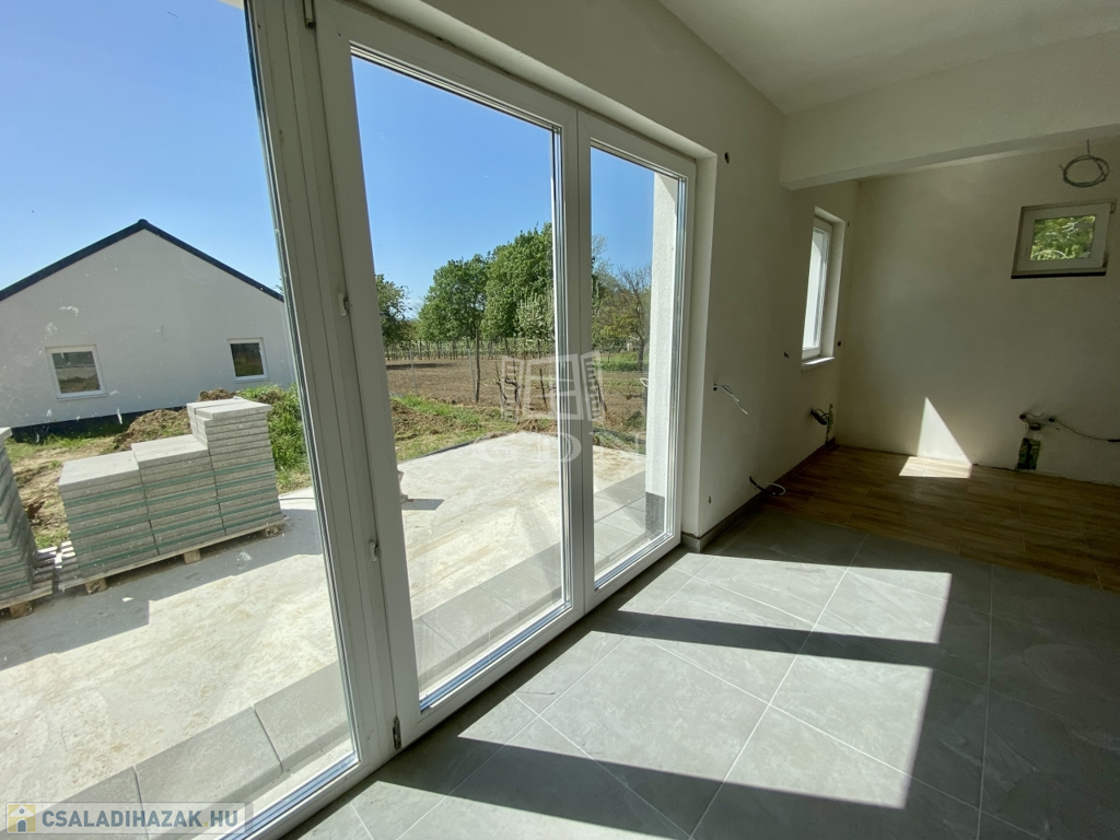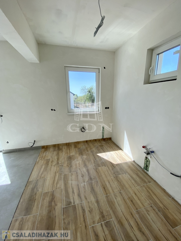 Alsó szinten: világos, déli tájolású amerikai konyhás nappali, két hálószoba, fürdőszoba, valamint egy praktikus kamra, felül még alakíthatóak a helyiségek.