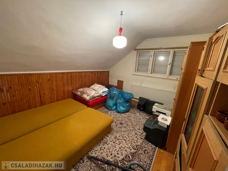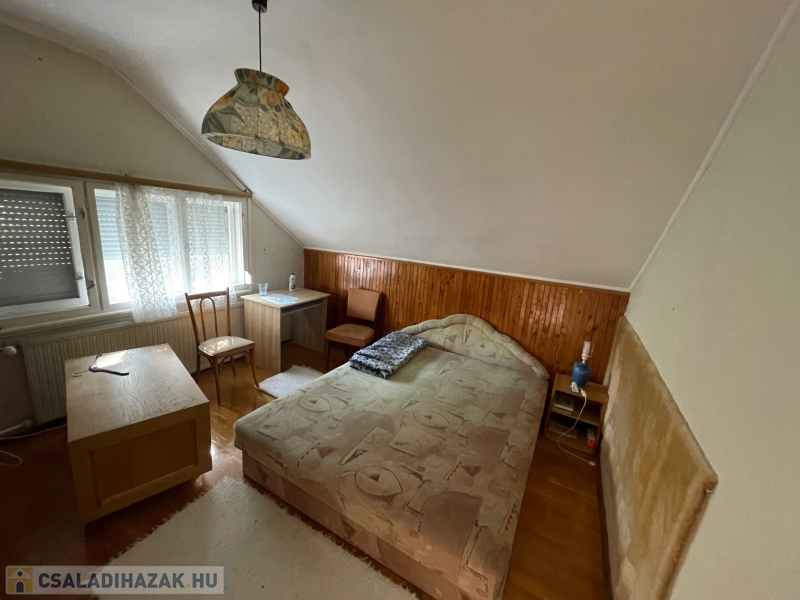 Az 564 m2-es belterületi összközműves telken két ház áll. A nagyobb épület hasznos alapterülete 110 m2 + 2,64 m2 erkély + pince. Földszint + tetőtér beépítéses, és részben alápincézett. A kisebb épület 56 m2 alapterületű.