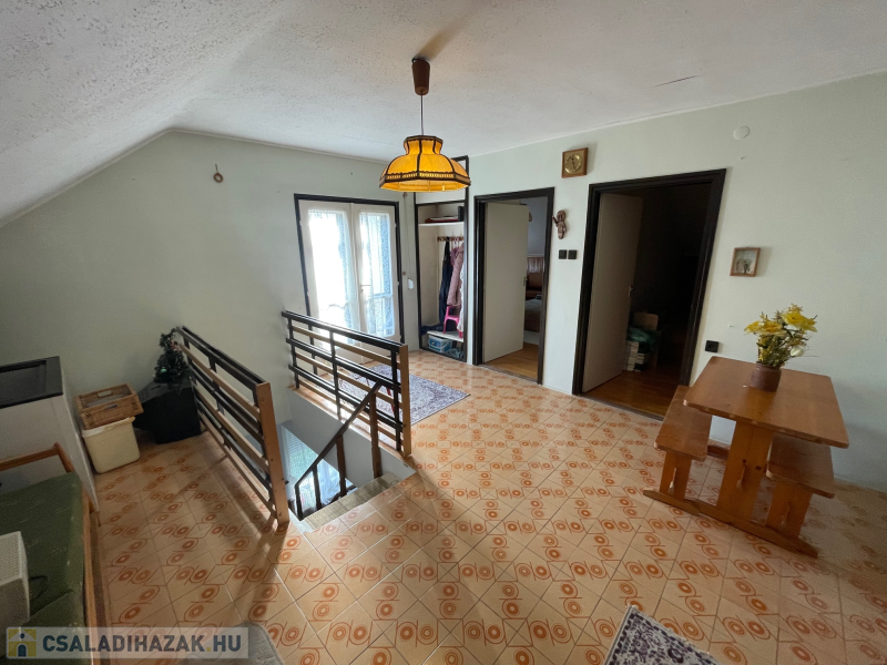 A nagyobb lakóház téglaépítésű, bitumenes zsindely fedésű. A 80-as években nyerte el mostani formáját, egy előzményépülethez történő hozzáépítéssel. Fűtése a pincében elhelyezett gázkazánnal és opcionálisan egy vegyestüzelésű kazánnal megoldott. A hőleadás a helyiségekben radiátorokkal történik. A ház optimális elosztású, a lakrész továbbiakban is jól alakítható. A földszinten előtér, konyha, fürdőszoba, étkező, kamra és egy 16 m2-es szoba, valamint egy változtatható funkciójú 12 m2-es műhely/tároló helyiség található.