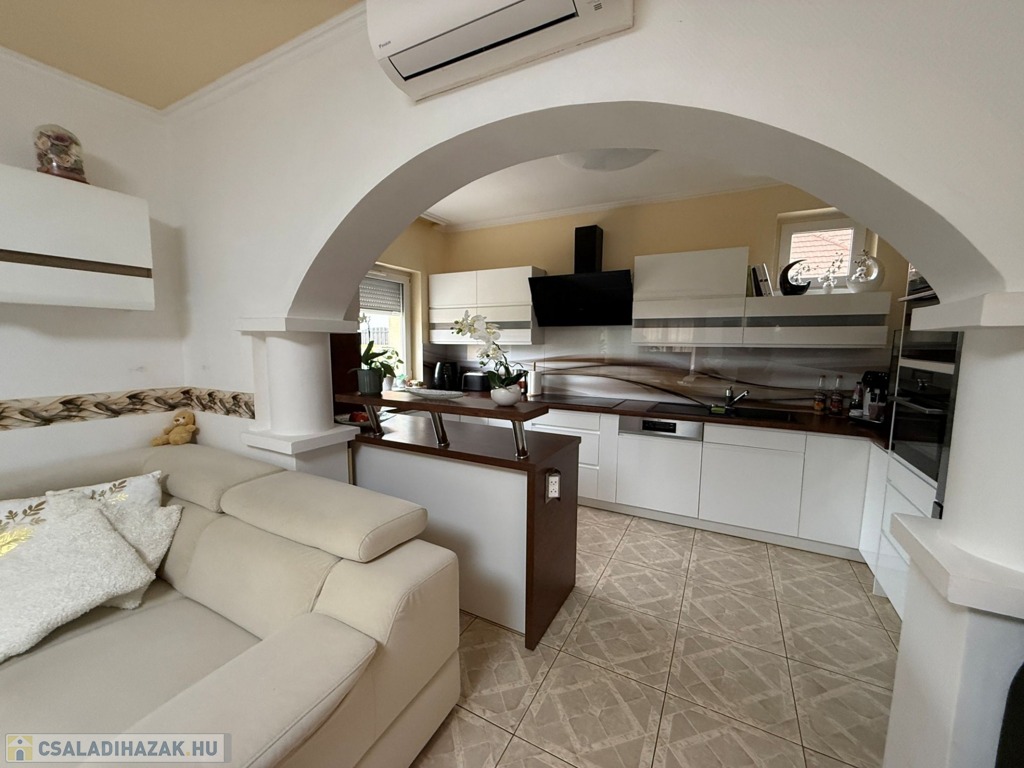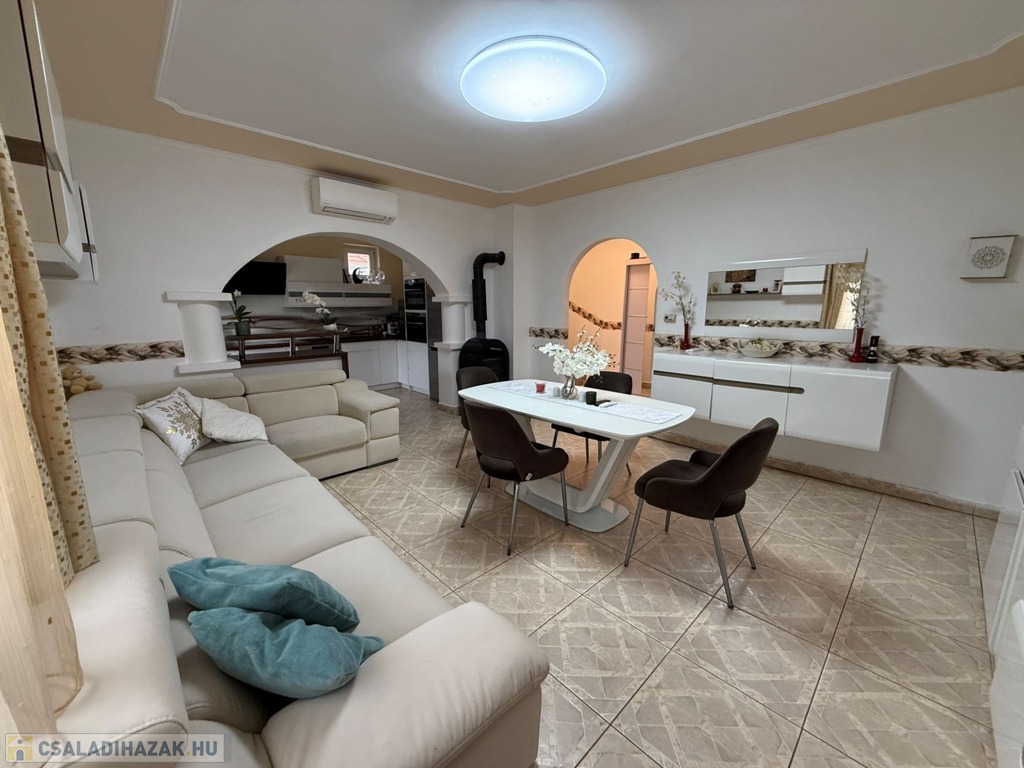 A ház világos lakótere kényelmes életteret biztosít akár egy nagyobb család számára is. A 2 egész és 2 félszoba funkciója rugalmasan alakítható – lehet háló, dolgozószoba vagy vendégszoba, ahogy az élet éppen megkívánja.