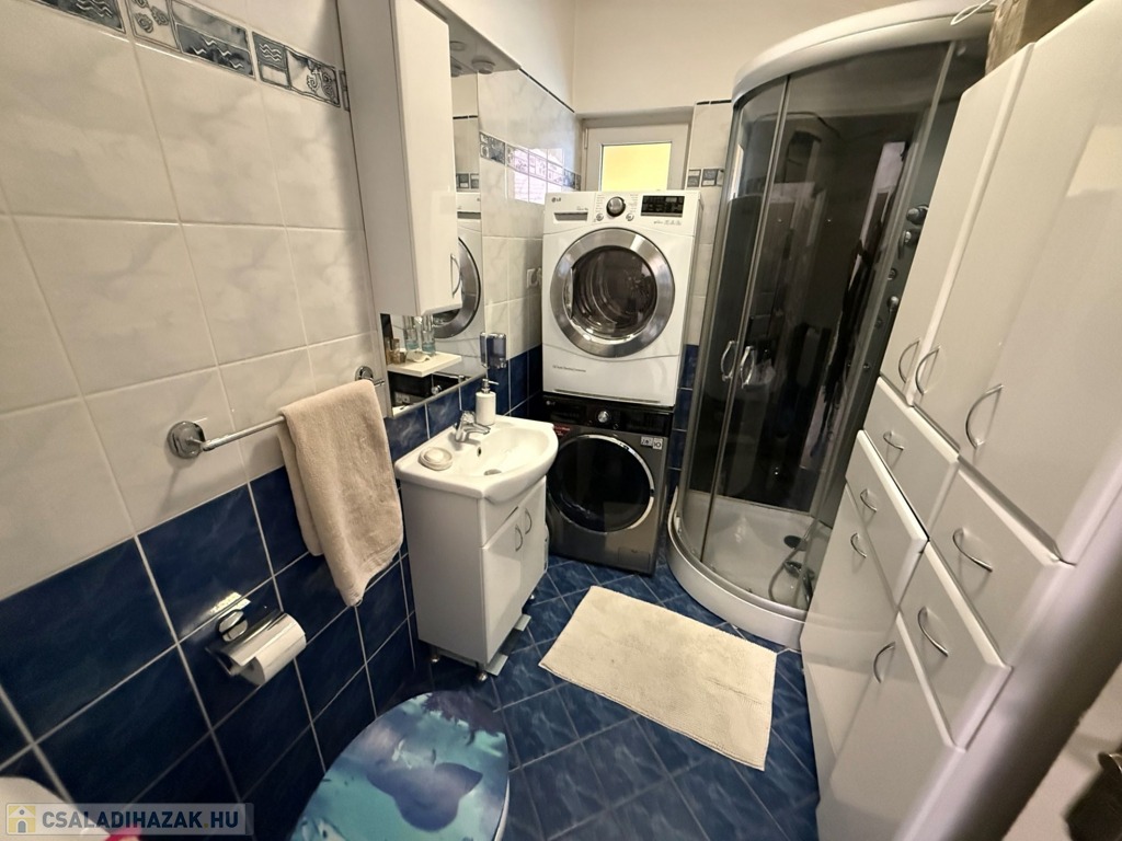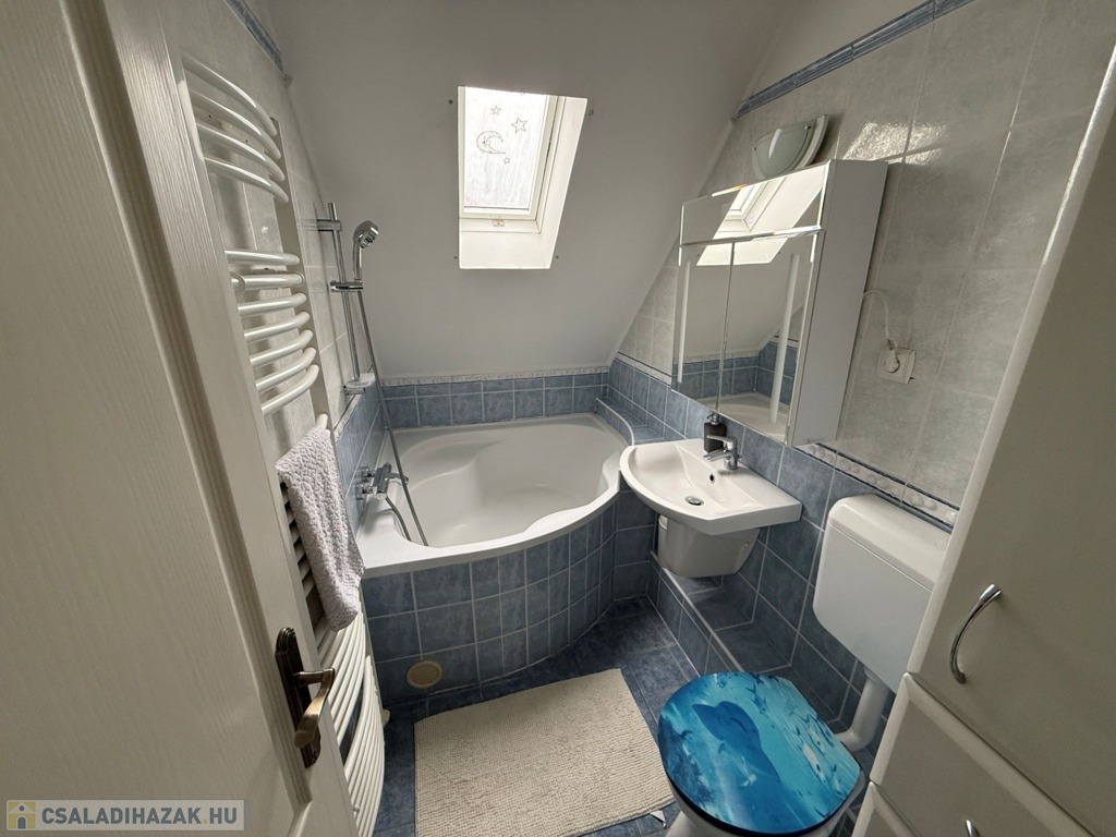 A praktikumról két fürdőszoba gondoskodik: lent fürdő és WC, fent pedig egy sarokkádas fürdőszoba WC-vel, ahol egy hosszú nap után igazán jól esik megpihenni. A tetőtérben található szobákhoz beépített gardróbszekrények tartoznak, így a tárolás is kényelmesen megoldott.
