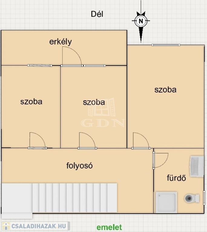 - Az emeleten 3 szoba, erkély és egy fürdőszoba, a padlástérben még egy további szoba és egy illemhelyiség került kialakításra.
