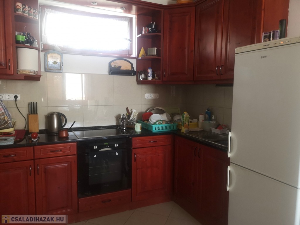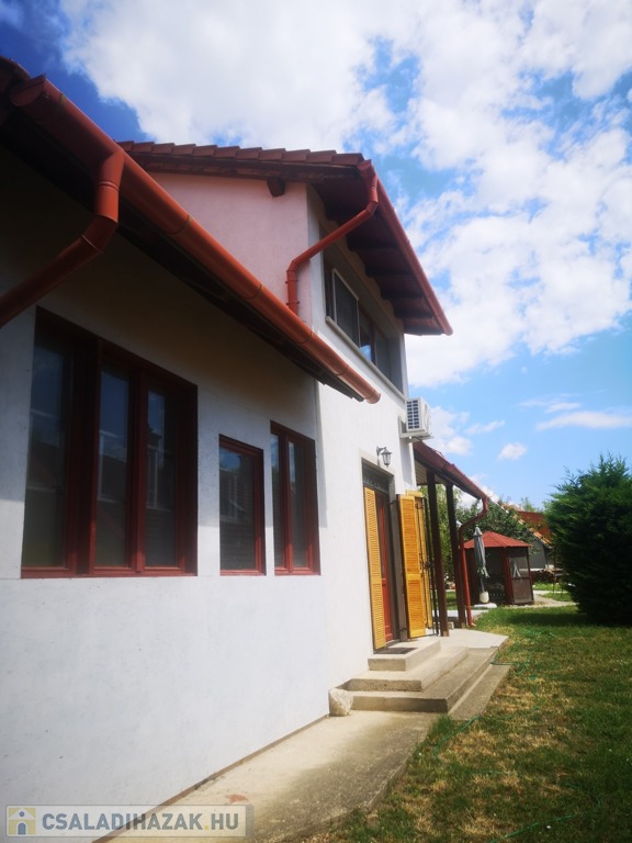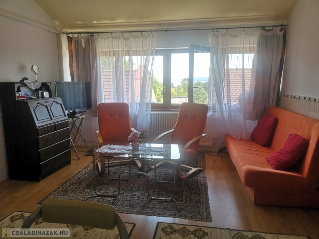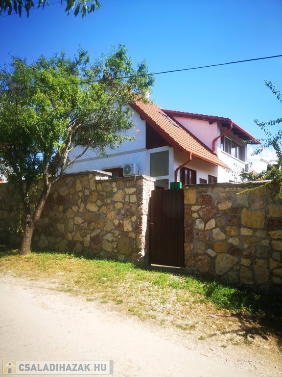 Veszprém vármegye, Balatonudvari, 165m2-es családi ház eladó. A kedvelt Balaton-parti település csendes utcájában található ingatlan fogadószintjén közlekedő, kazánház (tároló), nappali, konyha, étkező, két hálószoba és fürdőszoba, míg a tetőtérben további három szoba, konyha, nappali (kilátással a Balatonra), és fürdőszoba került kialakításra. A 2013-ban, 709m2-es telekre épült, szigetelt családi ház melegéről fatüzelésű kazán, valamint kandalló gondoskodik. A meleg vizet elektromos bojler biztosítja. A klimatizált, részben alápincézett, tehermentes ingatlan udvarán pergola, fúrt kút található, továbbá a gázrákötési lehetőség is biztosított.