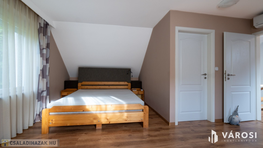 A gondozott kert kiváló lehetőséget nyújt a kikapcsolódásra, ideális környezet azok számára, akik nyugalomra és természetközeli élményre vágynak. A parkosított telek folyamatos ápolásáról szakemberek gondoskodnak, így mindig rendezett látványt nyújt. A kertben található teraszok ideálisak szabadtéri pihenéshez, baráti összejövetelekhez vagy grillezésekhez. Ezen felül a hátsó kert kialakítása lehetővé teszi egy nagyobb medence telepítését, amely tovább fokozza a nyári kikapcsolódási lehetőségeket.