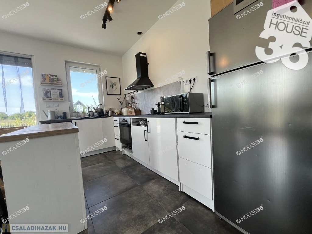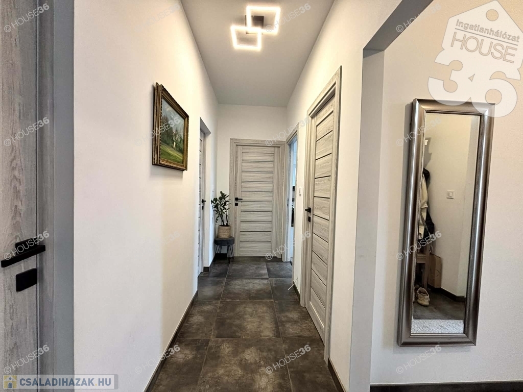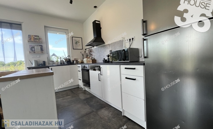 2023-ban épült, modern, 101 m2-es családi otthon keresi új tulajdonosát egy különálló 760 m2-es, teljesen közművesített és körbe kerített telken.