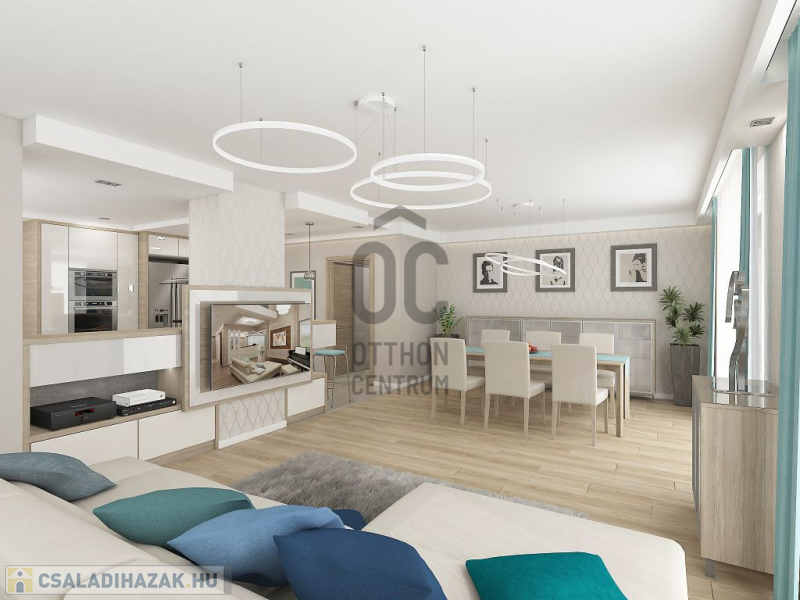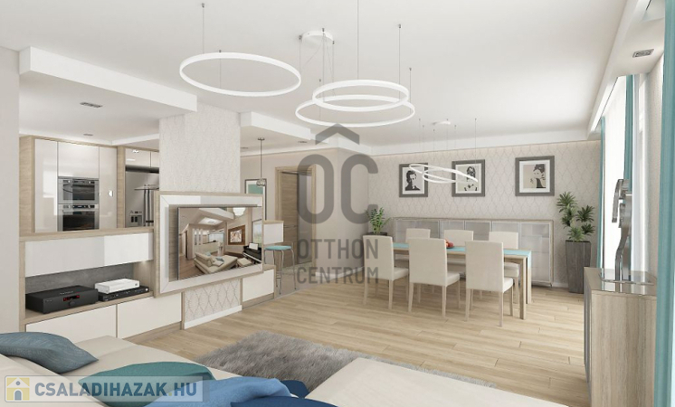 - fedett terasszal kapcsolatos konyha- étkező- nappali, 3 kényelmes méretű hálószoba, fürdőszoba és külön WC, mosókonyha és széles közlekedő