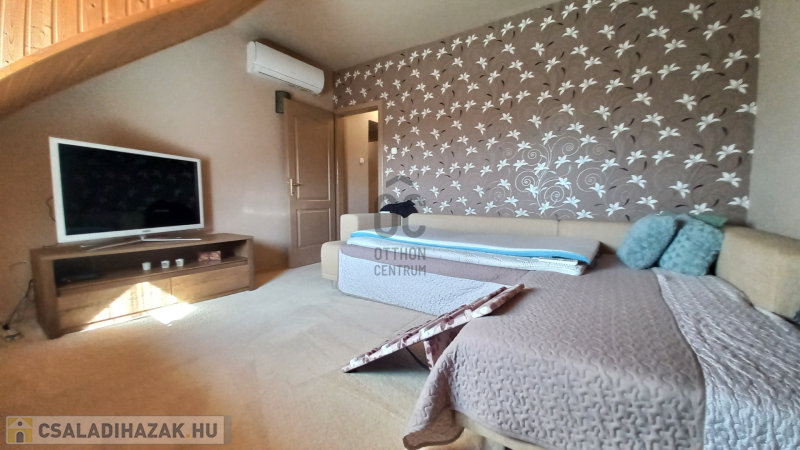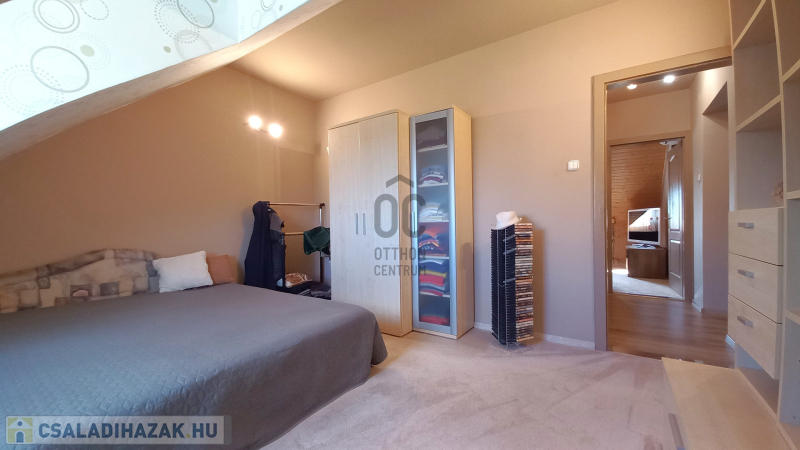 - az emeleti rész 3 hálószoba, gardrob, közlekedő és fürdőszoba elosztású