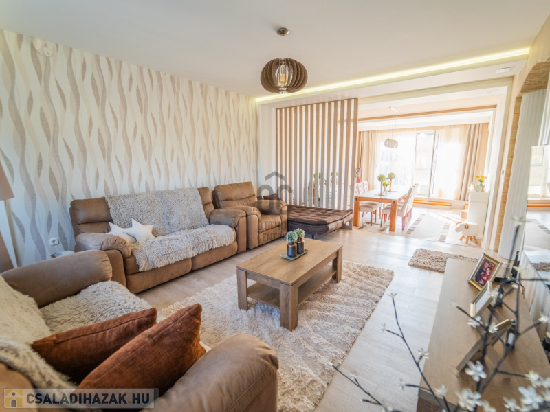 - konyha- étkező ( közvetlen terasz kapcsolattal) és nappali egy légtérben került kialakításra a földszinten, ahol még fürdőszoba, kölön WC, kamra és előszoba található