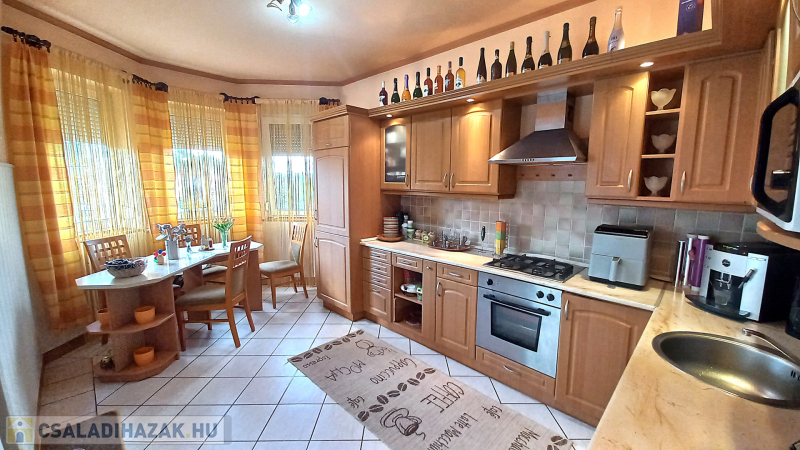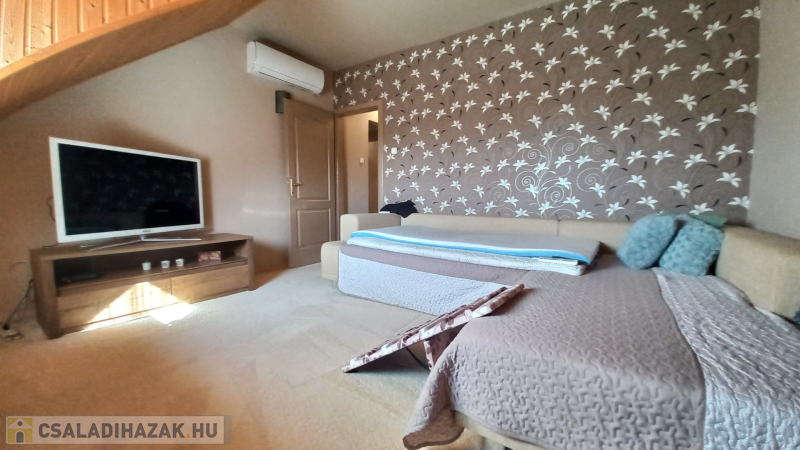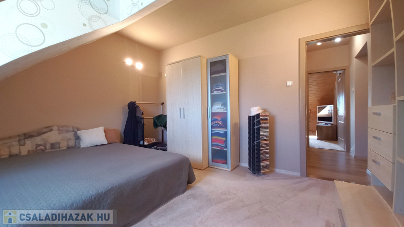 - az emeleti rész 3 hálószoba, gardrob, közlekedő és fürdőszoba elosztású