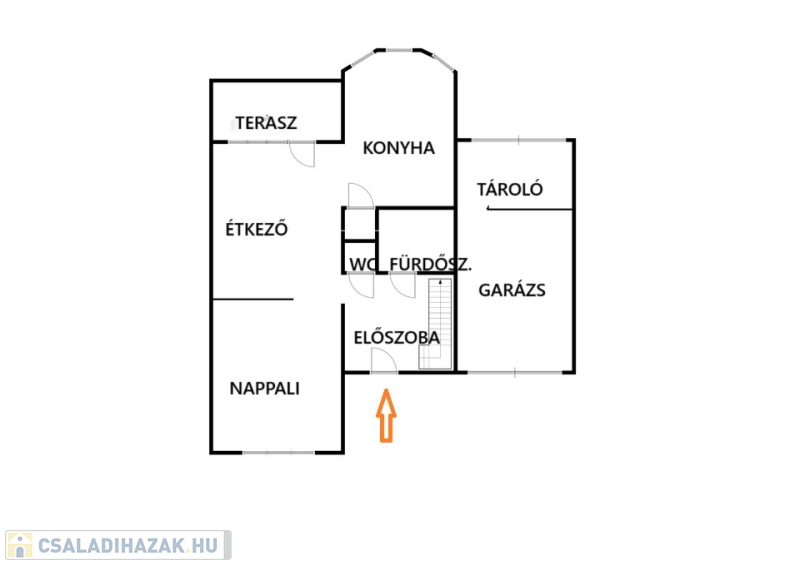 - konyha- étkező ( közvetlen terasz kapcsolattal) és nappali egy légtérben került kialakításra a földszinten, ahol még fürdőszoba, kölön WC, kamra és előszoba található