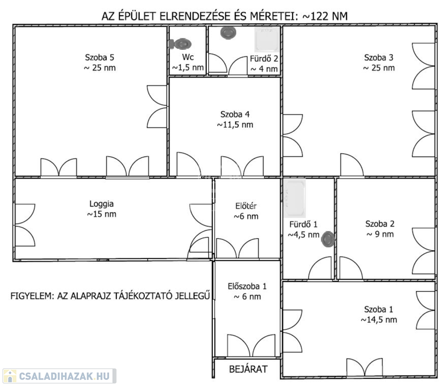 A családi ház hasznos alapterülete 122nm, melyben található: