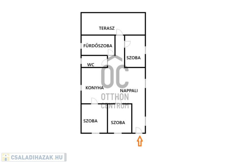 - konyha- étkező- nappali, 3 hálószoba, fürdőszoba , külön WC és közlekedő elosztású