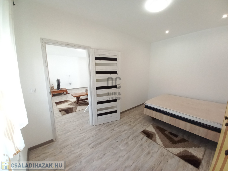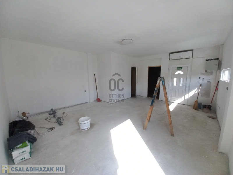 Új építésű könnyűszerkezetes mellékelépület, 75 nm mely 2 különálló lakrész kialakítására, vagy ütleti tevékenység folytatására is alkalmas.