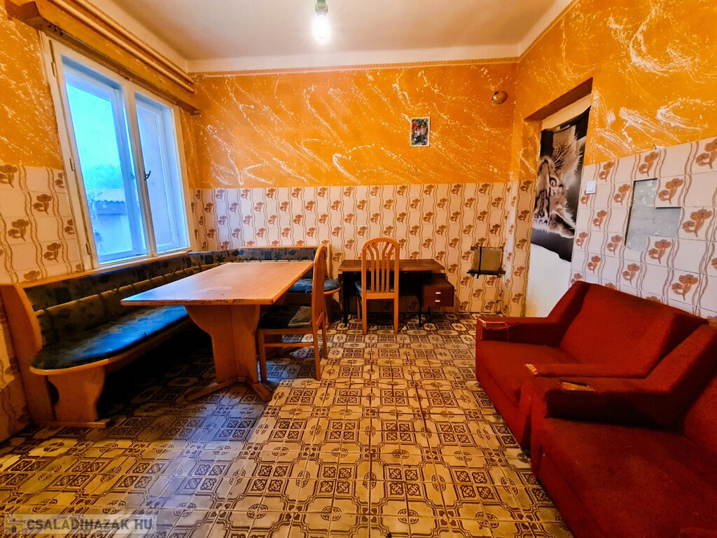 Családi ház 175 m2 hasznos alapterületű, 997 m2 telekterületen helyezkedik el. Az ingatlan beton alapra épült, tégla falazatú, melyben kialakításra került: nappali + 6 szoba, konyha, étkező, fürdő, WC, spájz és nyári konyha.