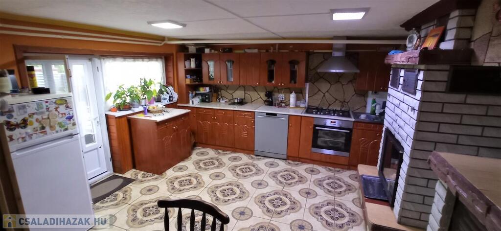 Helységek: 6 külön nyíló szoba, 2 nappali, 2 fürdőszoba, WC, konyha, kamra, kazánház, tárolók, garázs.