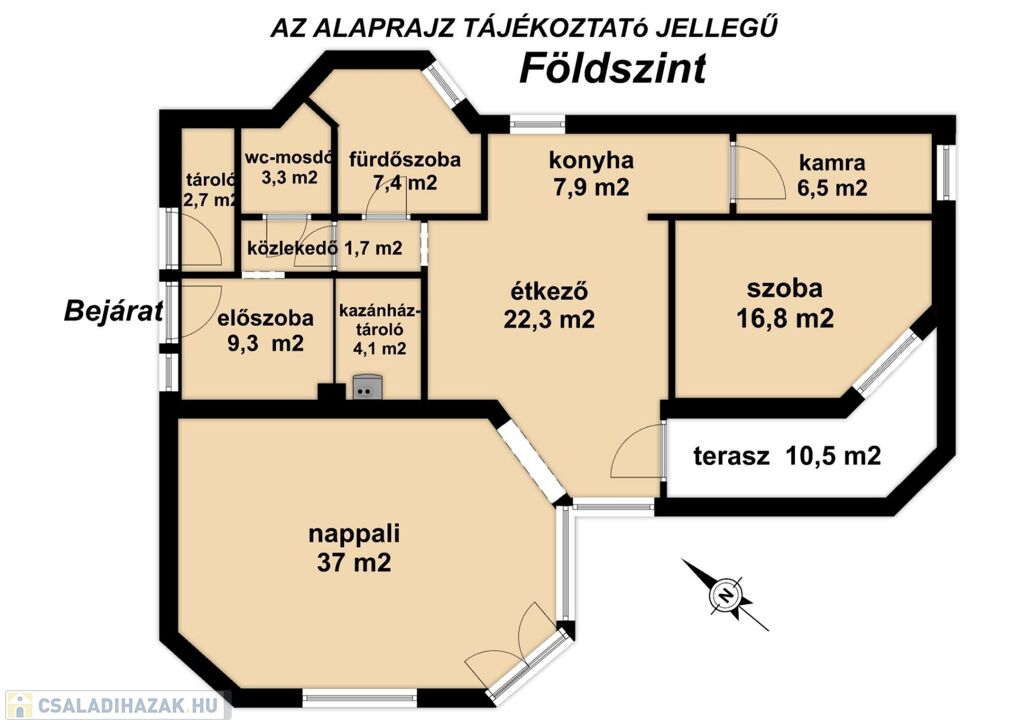 Egy kellemes méretű nappali, konyha-étkező, hálószoba, valamint kamra, fürdőszoba, mosókonyha és külön wc áll rendelkezésre.