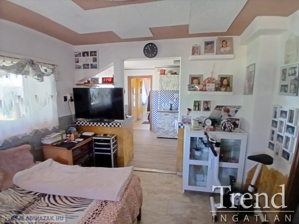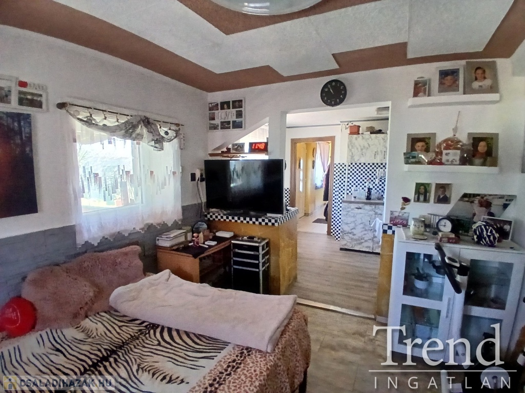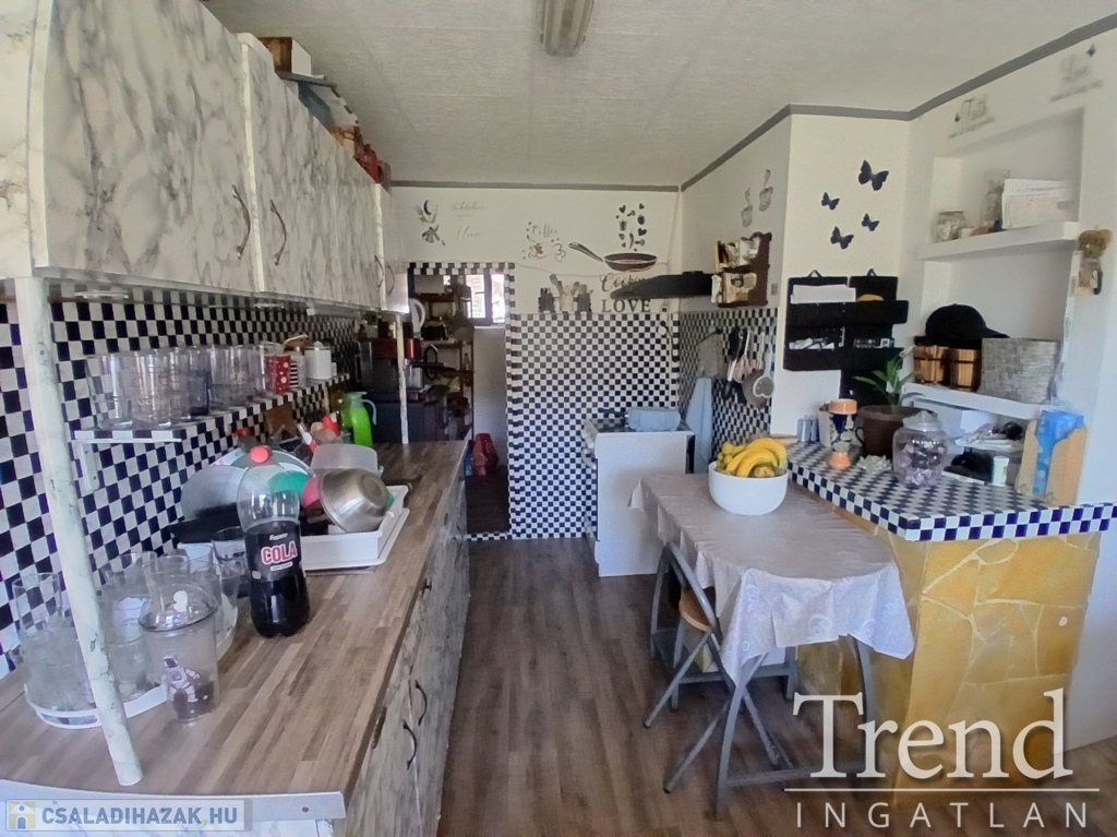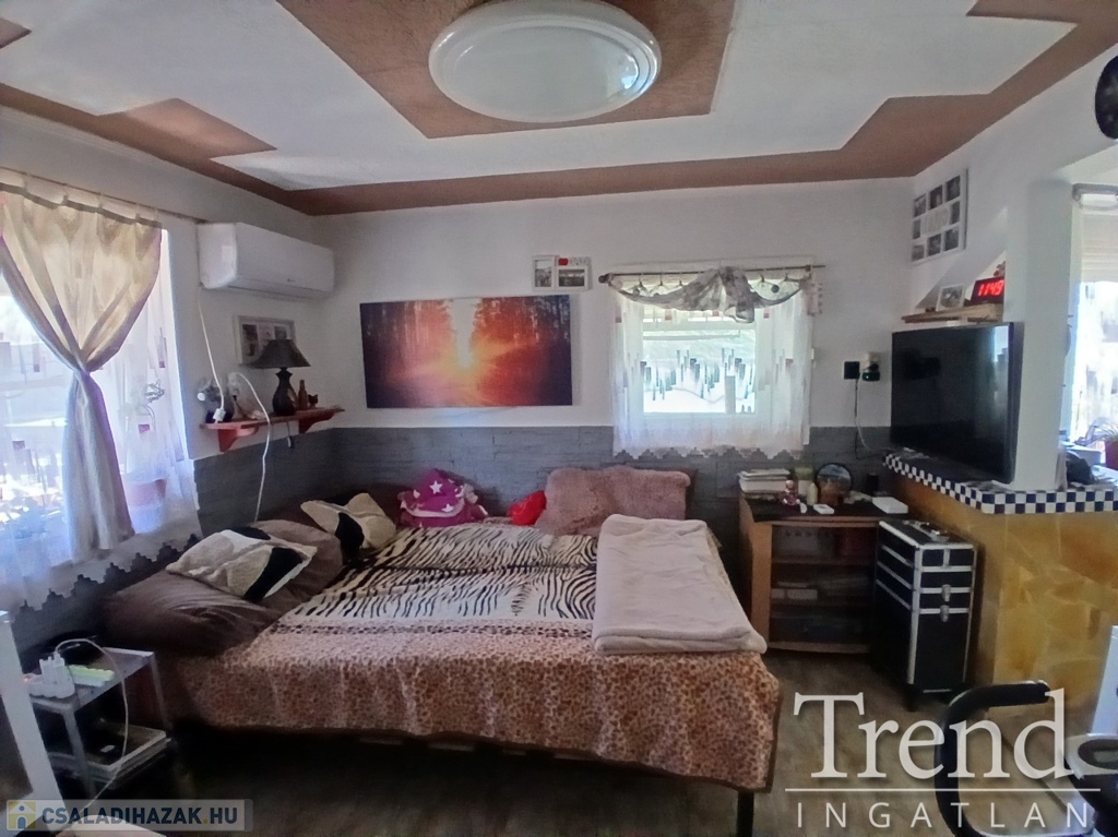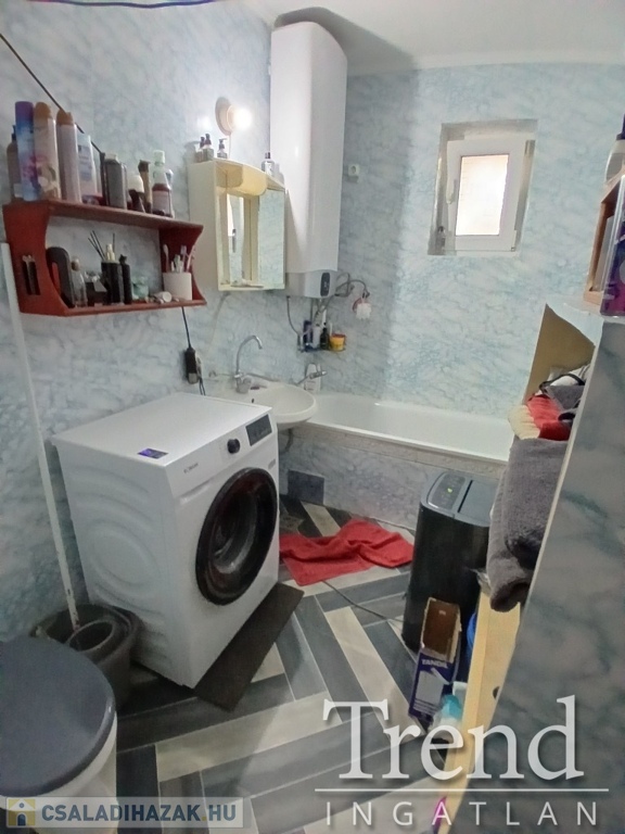 A ház praktikus elrendezésű: a tágas konyhához kamra is tartozik, a nappaliban pedig egy 3,5 kW-os hűtő-fűtő klíma biztosítja a komfortot. A fürdőszoba és WC egy légtérben található, ahol 2 éve cserélt Ariston okosbojler gondoskodik a melegvízről.