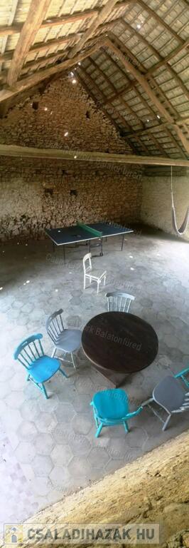 Kőpajta (130 m² + emelet + tetőtér): Részben elkészült, jelenleg közösségi tér, pingpongterem, grillkonyha, egyedi hatszögletű padlóval. Óriási potenciál: akár wellness részleg, további 8 vendégszoba, vagy közösségi tér.