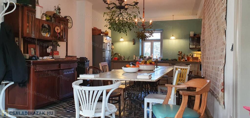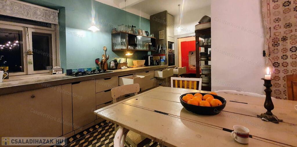 Nagy Ház (130 m²): Teljesen felújított, 4 hálószoba, hatalmas, felszerelt konyha (16 fős asztallal!), 2 fürdő, 3 WC, nagy terasz, 30 m²-es boltozatos pince. Modern, távvezérelhető elektromos és faelgázosító kazán. További 60 m² beépíthető tetőtér (+3 szoba!).