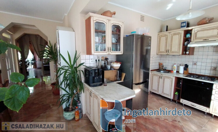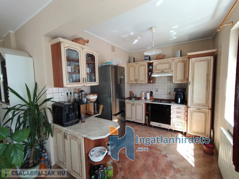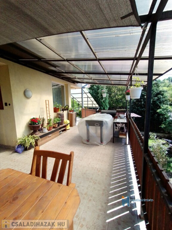 Elhelyezkedése: Belterület Tájolása: Déli tájolású Állapota: Kiváló Komfort besorolása: Dupla komfortos Építési éve: 1997 Alapterülete: 120 m2 Telekterülete: 575 m2 Szobák száma: 4szoba Felújított: Felújított Felújítás éve: 1998 Felújítás során elvégzett munkák: Villanyrendszer csere, Vízrendszer csere, Fűtésrendszer csere, Csempe csere, Járólap csere, Parketta csere, Tetőszigetelés, Nyílászárók cseréje, Hőszigetelt nyílászárók beépítése Közművek: Gáz, Víz, Villany, Csatorna Gázellátás: Vezetékes Vízellátás: Vezetékes víz Melegvíz-ellátás: Gázkazán Áramellátás: 230V Fűtés módja: Gáz, Fa Fűtés típusa: Cirkó, Kandalló Homlokzat állapot: Nívós Építési mód: Tégla Tető formája: Magas Tető anyaga: Cserép Parkolási lehetőség: Garázsban, Utcán, Telken Kilátás: Utcafronti kilátás, Udvari kilátás, Hegyi panoráma, Parkra nyíló kilátás Napelem: Nincs Jellemzői: Alacsony rezsi, Csendes környék, Jó közlekedés, Két bejárat, Étkező, Udvari terasz, Amerikai konyha, Beépített konyhabútor, Autóbeálló, Kert, Kerítés, Parketta burkolat, Egyedi vízóra , Térkő, Zöldterület, Jó közbiztonság, Beépített tetőtér Energetikai besorolás: Nincs adat Egyéb jellemzők: Erkély, Terasz, Melléképület, Pince, Tetőtér Tv, Internet: Kábeltévé, Internet, Vezetékes telefon Közelben: Iskola, Óvoda, Vasútállomás, Autóbuszállomás, Orvosi rendelő, Bolt, Gyógyszertár, Postahivatal, Vendéglátó egység, Autópálya Rezsi költség(Ft): 40000 Terhelések: Tehermentes ingatlan