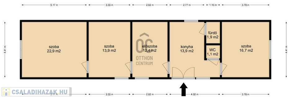 - 3 szoba, előszoba, konyha, fürdő, WC helyiségek lettek kialakítva,