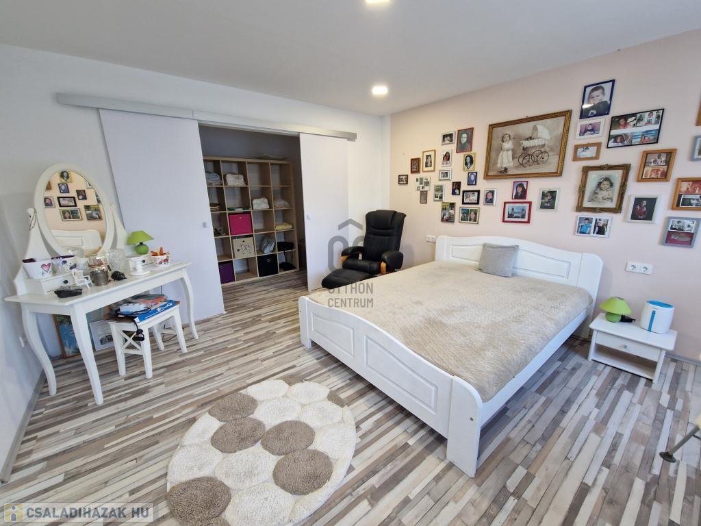 A modern fa nyílászárók hő- és hangszigeteltek, redőnnyel és szúnyoghálóval felszereltek. A padlóburkolatok járólap, laminált padló és parketta kombinációjából állnak.