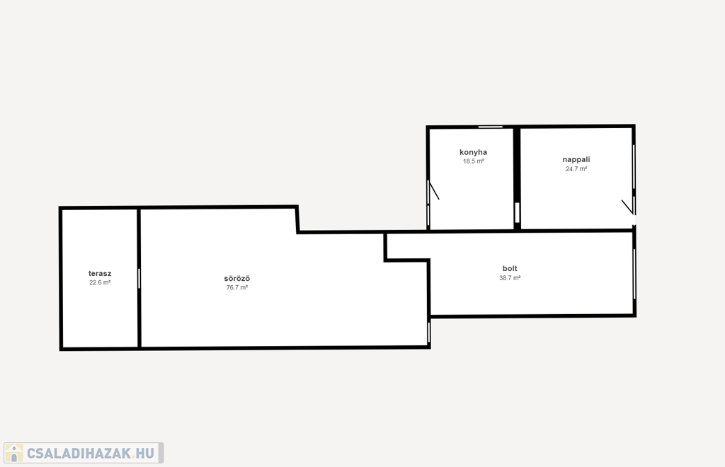 • söröző helyiség: 76,7 nm