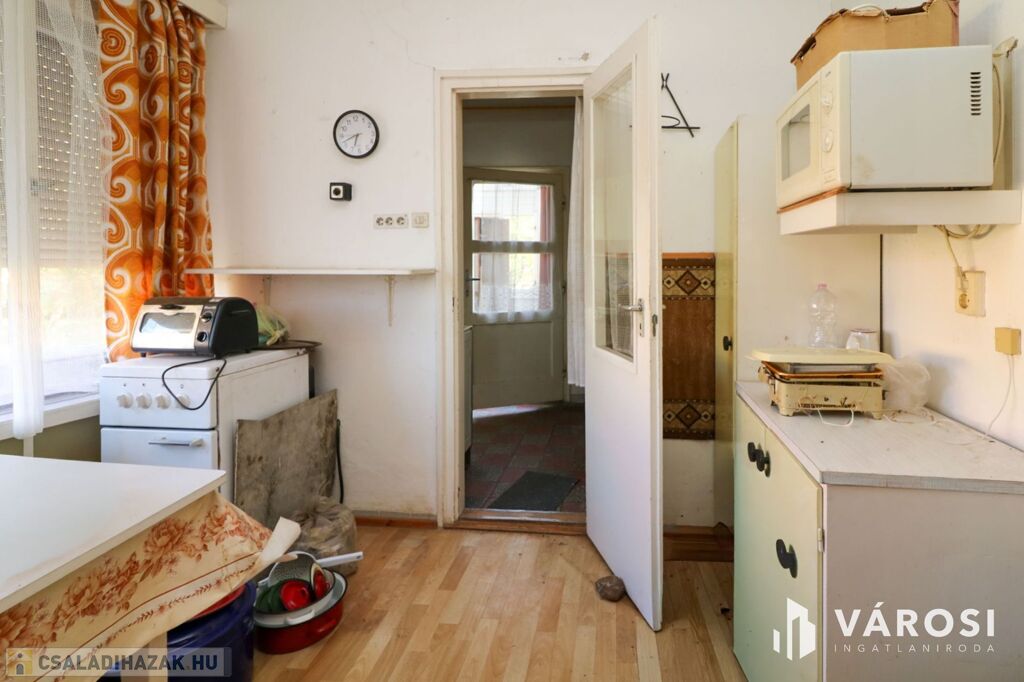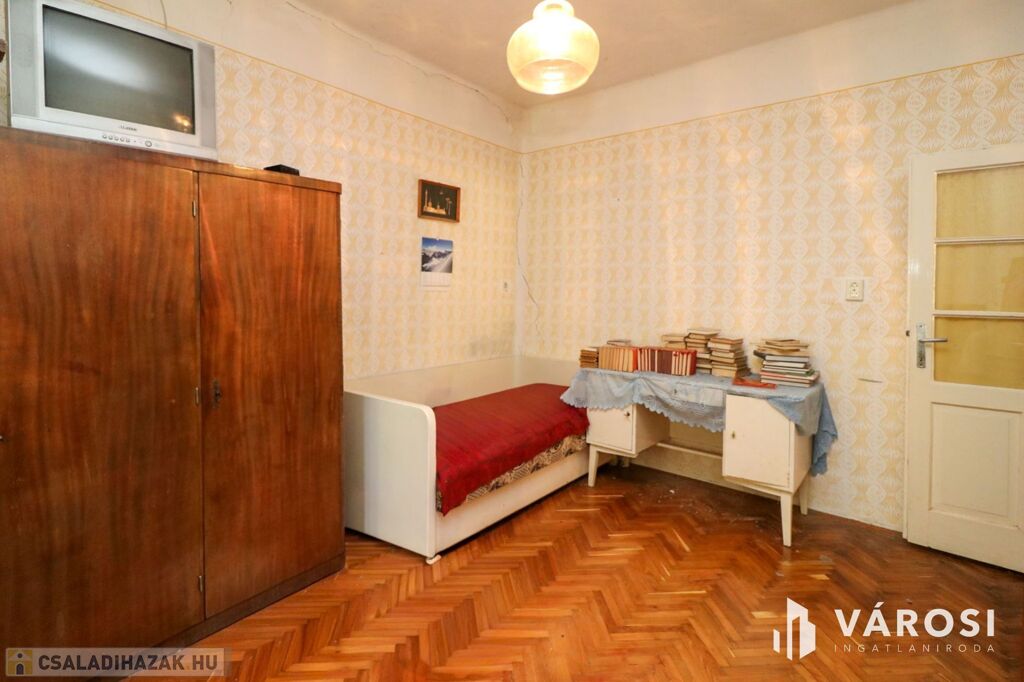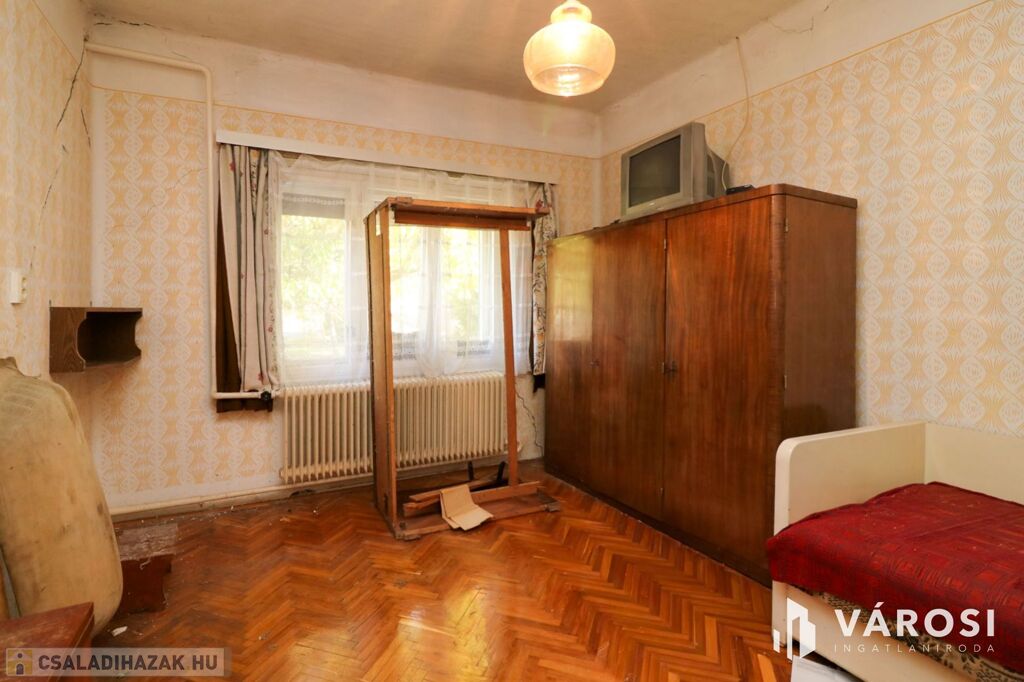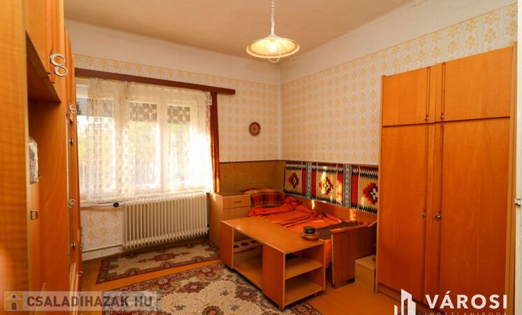 Békésen, a Csabai út közelében, csendes és aszfaltozott mellékutcában eladó egy felújítandó, téglaépítésű „Kádár kocka” típusú családi ház.
